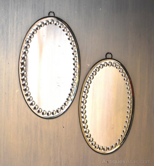 A fine and decorative pair of sorcerers mirrors. The mirrors have a border of convex circles engraved from the back which gives the name as these throw light around the room and were considered mystical. The mirrors are in very good condition simply mounted on metal plates. A wonderfully decorative and interesting pair of mirrors, in excellent condition. C.1900.