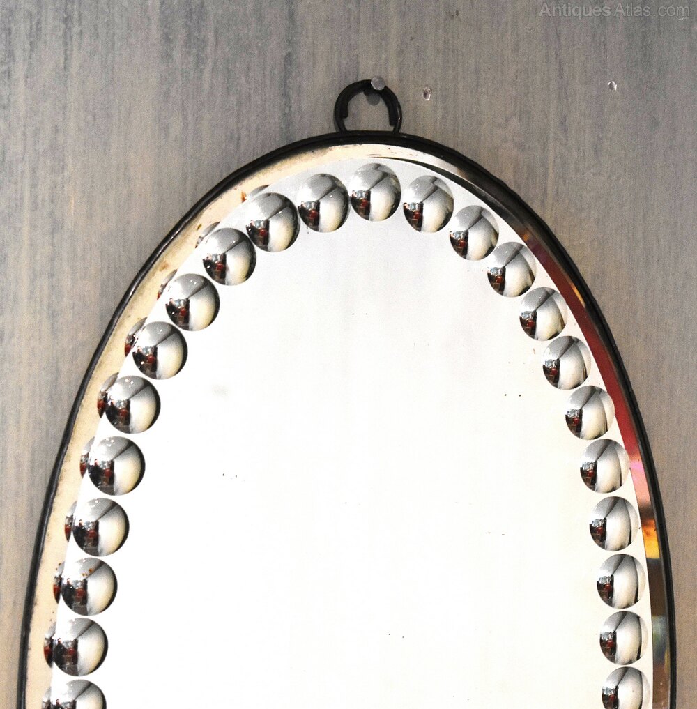 Vintage Wall Mirror, Art Deco Chrome Detail