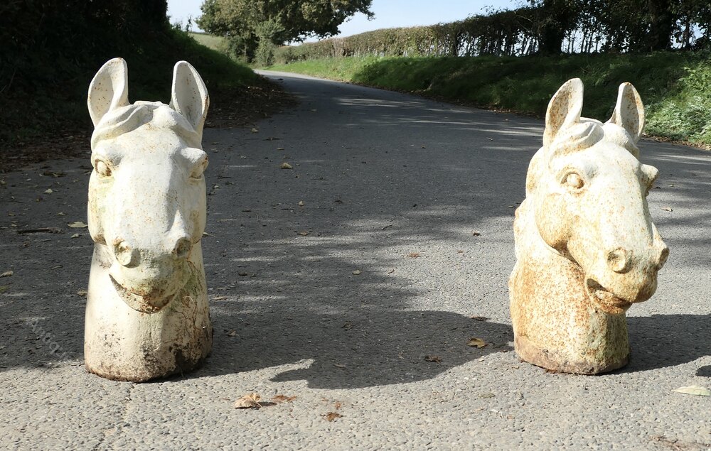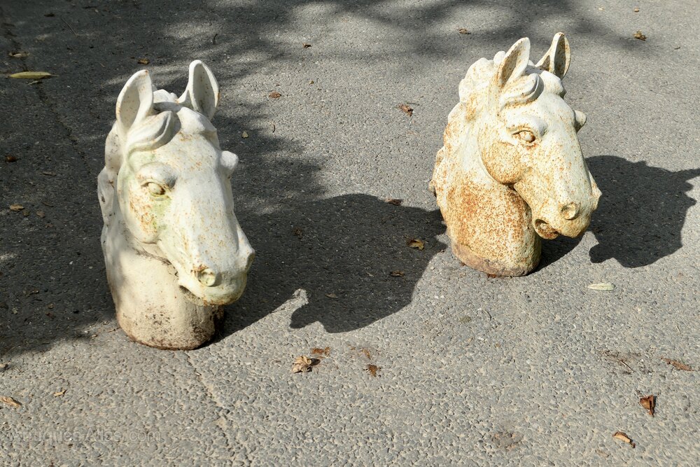 Pair of Statuesque Cast Iron Horse Head Gate Post