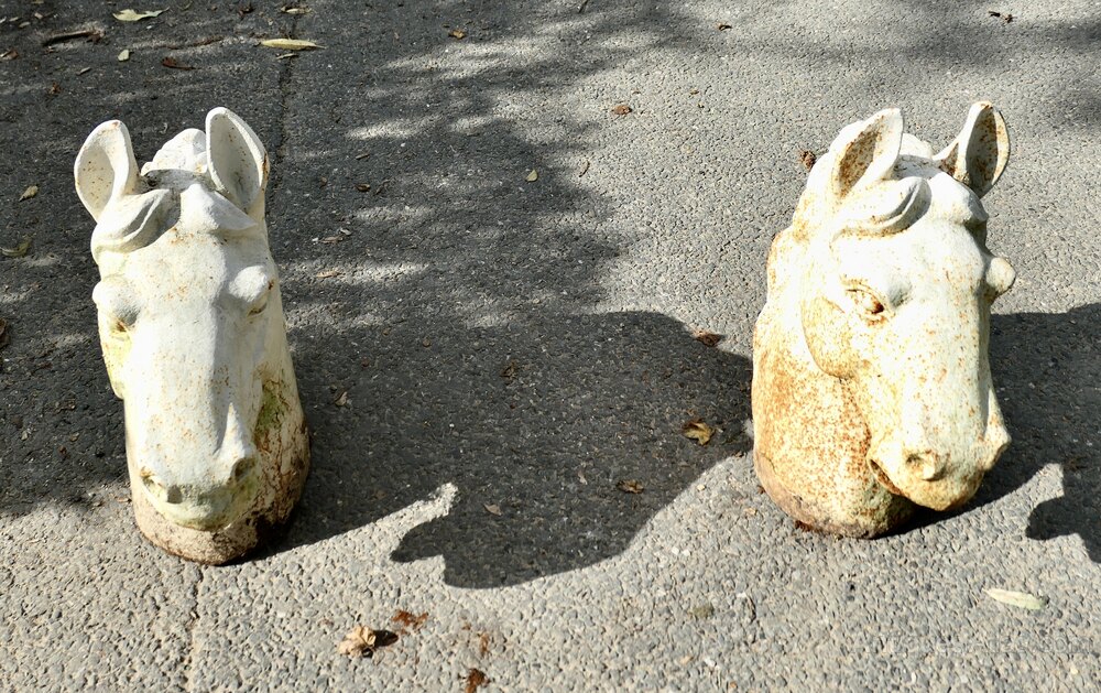 Pair of Statuesque Cast Iron Horse Head Gate Post Finials