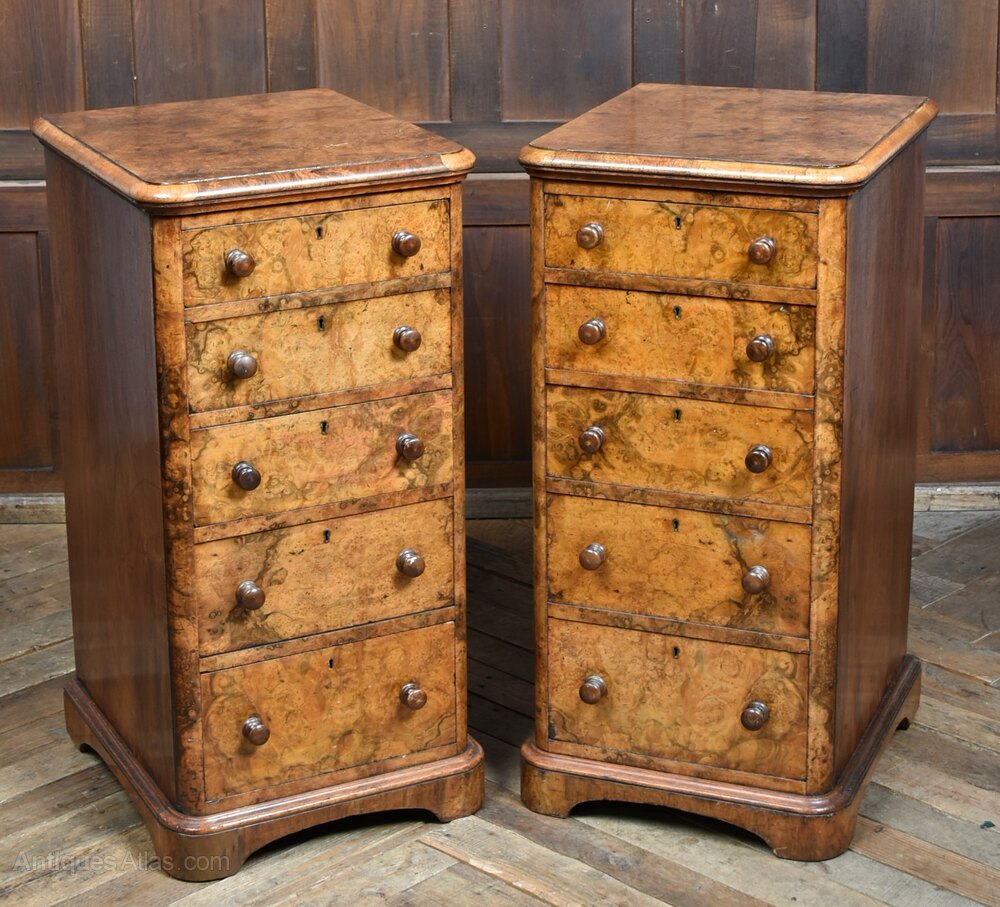 Pair Of Victorian Burr Walnut Bedside Drawers