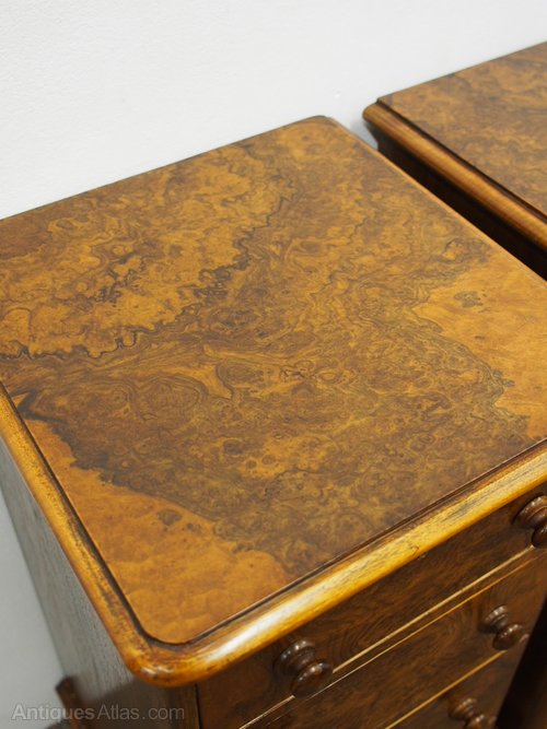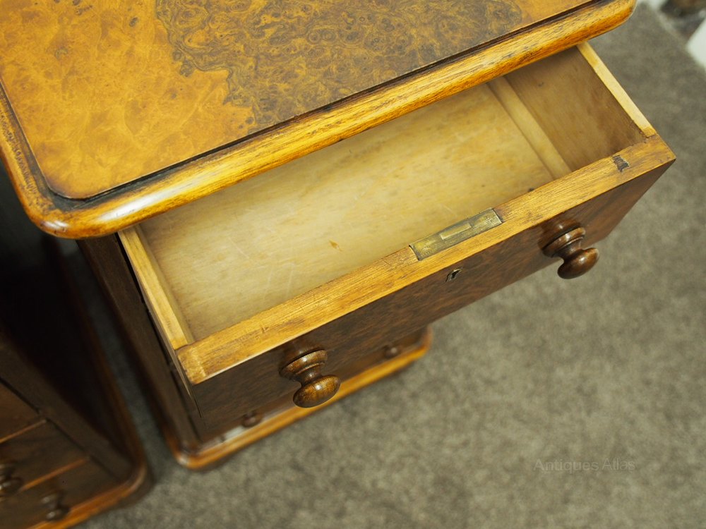 Pair of Victorian Burr Walnut Bedsides or Chest of drawers