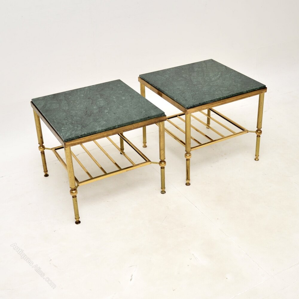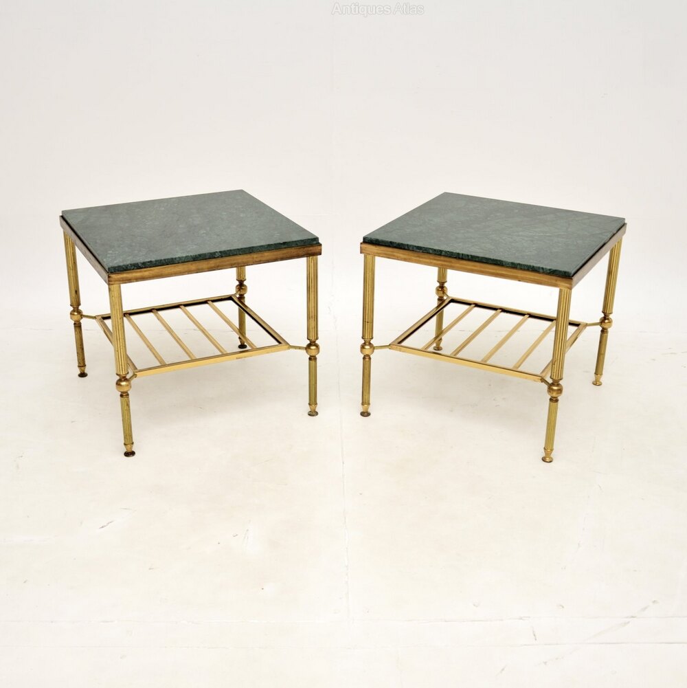 A stylish and extremely well made pair of vintage French brass and marble side antique tables. They were made in France and date from around the 1960-70’s.