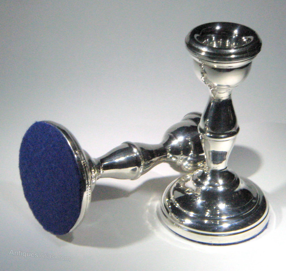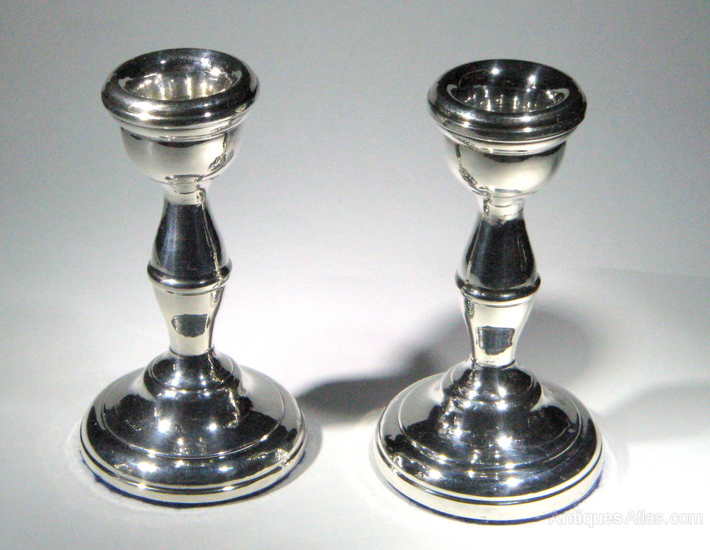 A good Pair of Vintage silver desk candlesticks. Hallmarked for Birmingham, 1972 with maker's marks for A. T. Cannon Ltd.