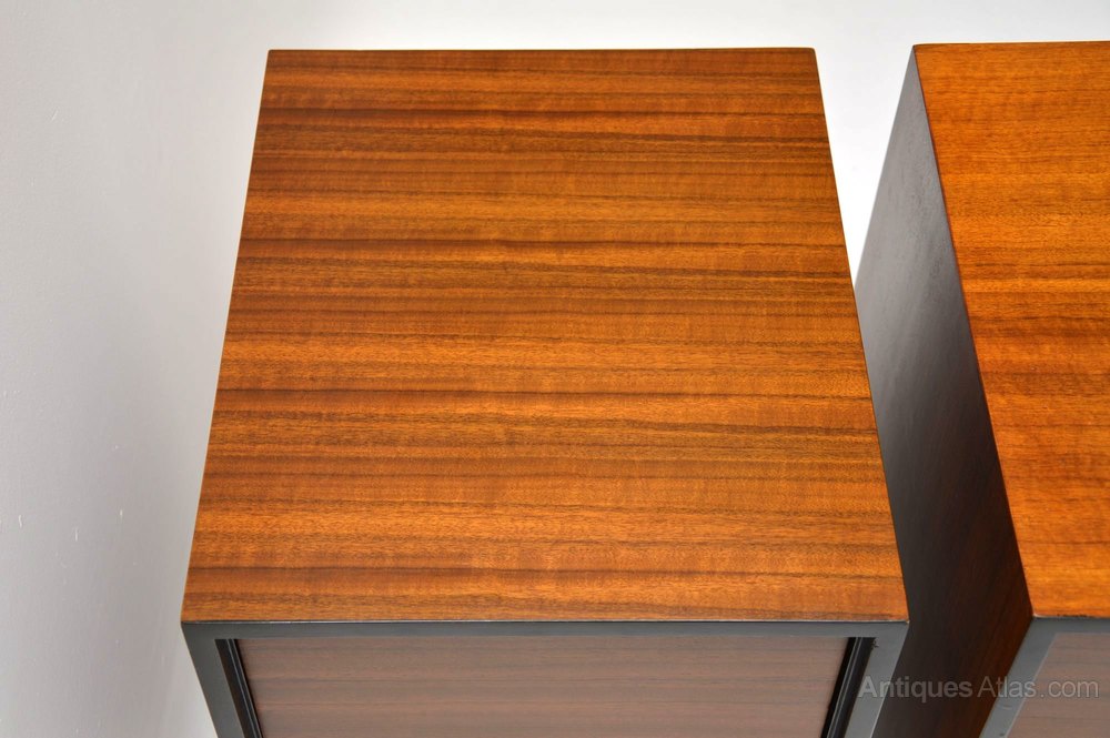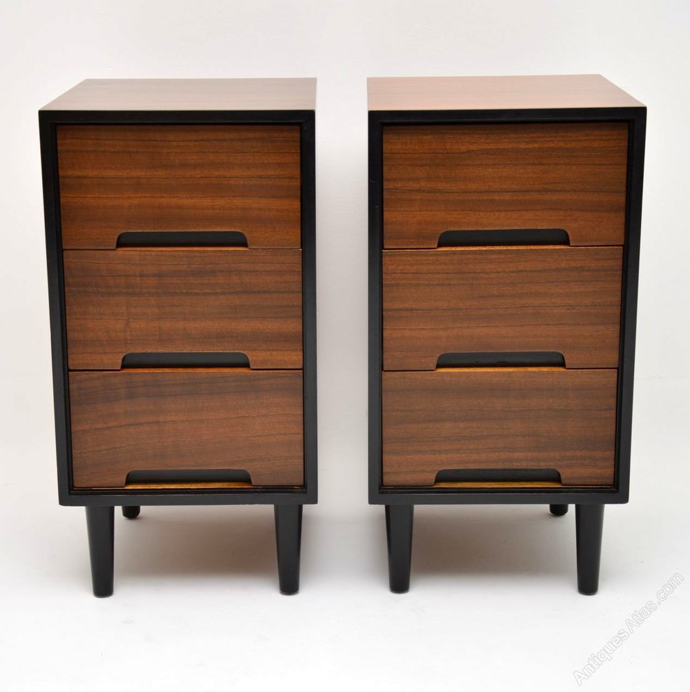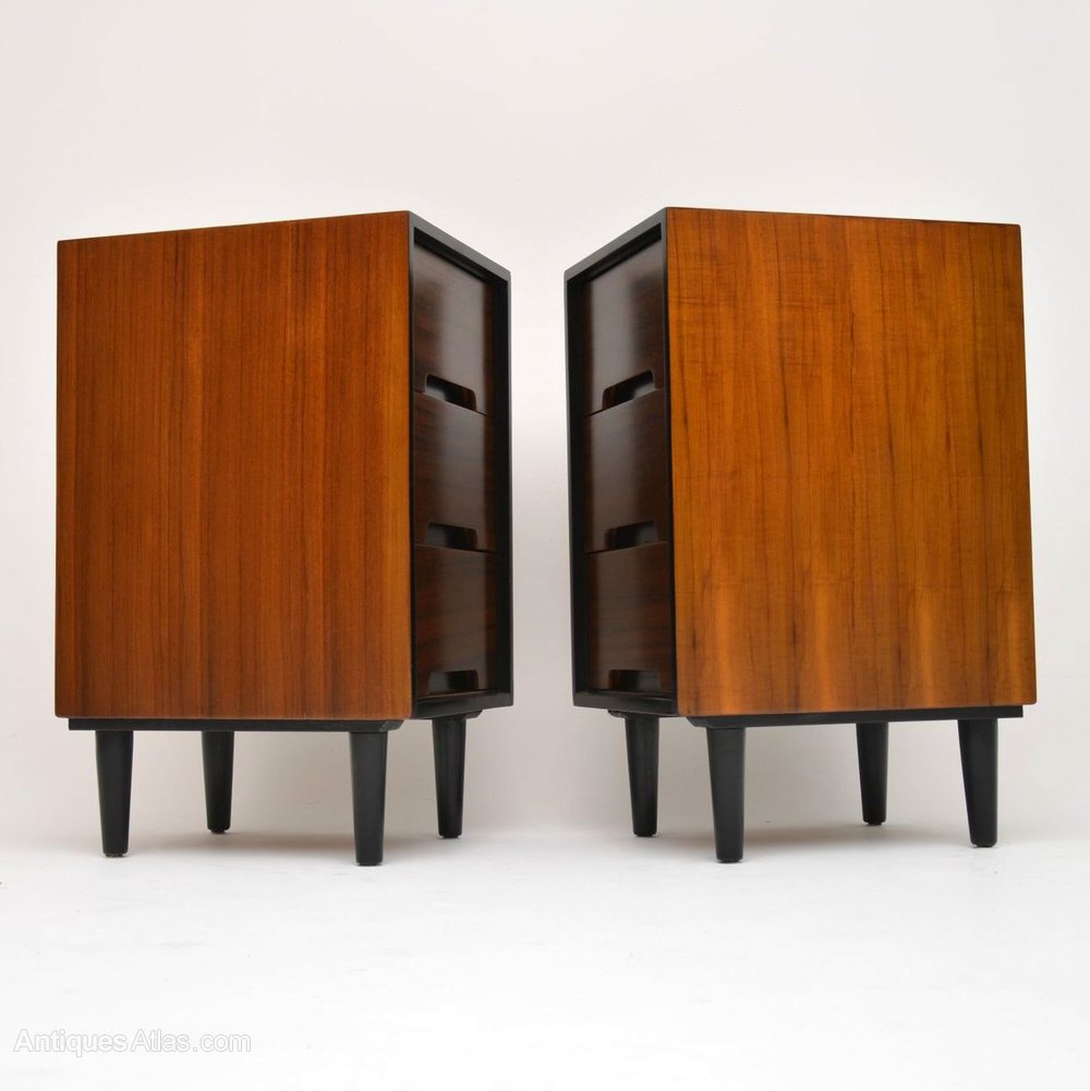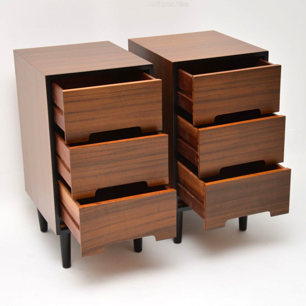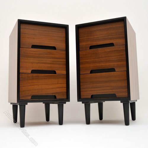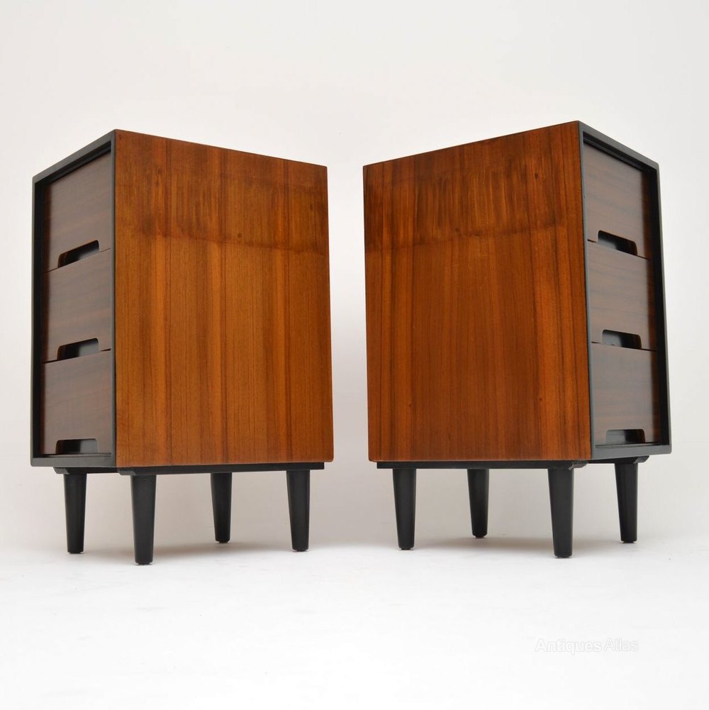 A stylish and very useful pair of vintage bedside chests, these were designed by John & Sylvia Reid for Stag furniture’s C range, they date from the 1950’s. These are the harder to find versions in walnut, we have had them stripped and re-polished to a very high standard, the condition is superb throughout.