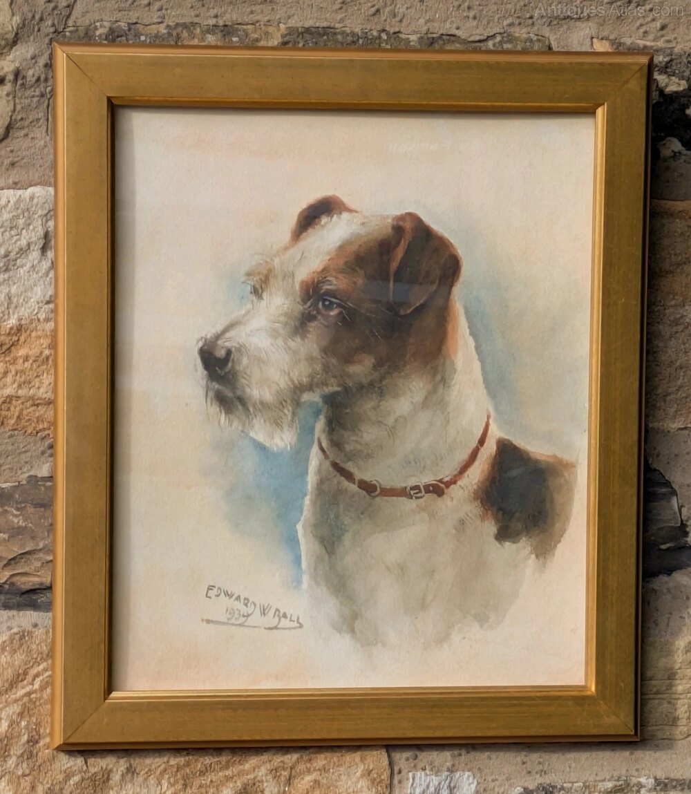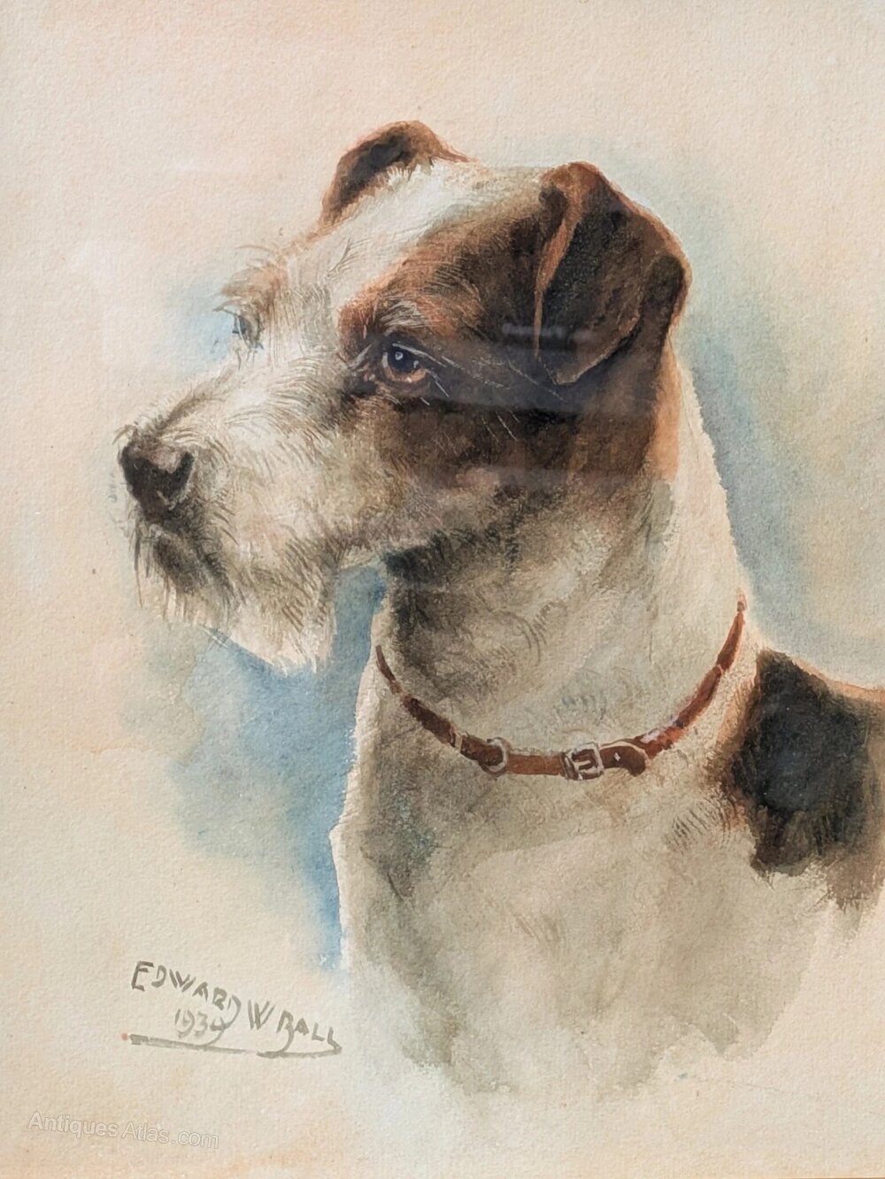 This is a lovely pair of early 20th century watercolor paintings of Terriers by Edward W. Balls. The dogs have been expertly painted with much charm and character and both pictures are signed by the artist, one dated 1939 the other 1943.