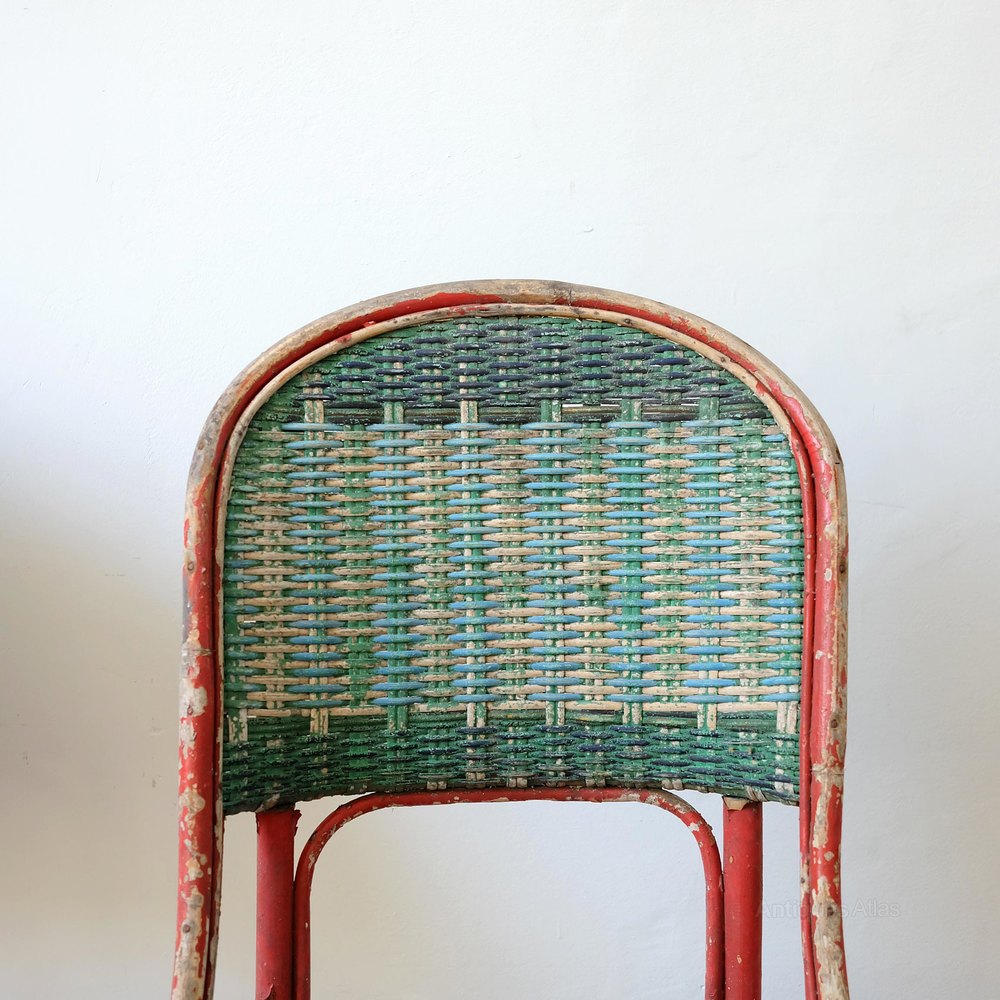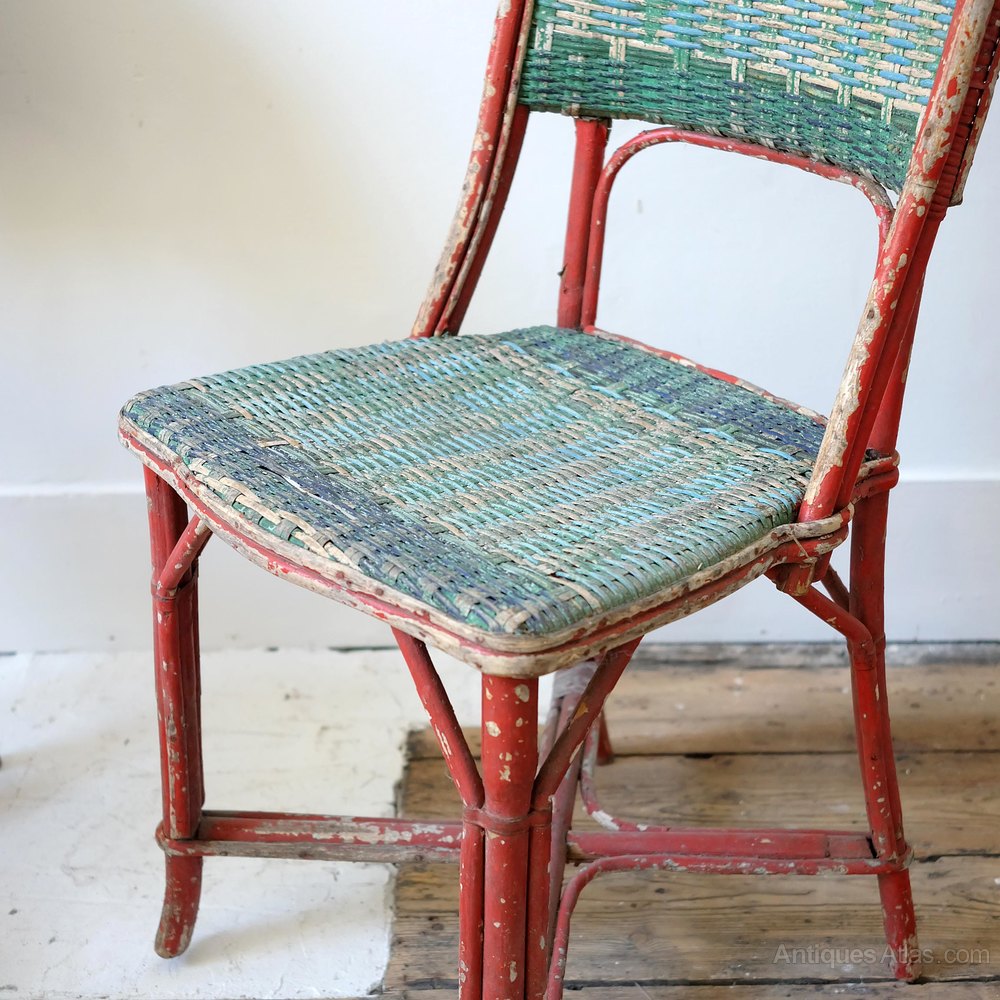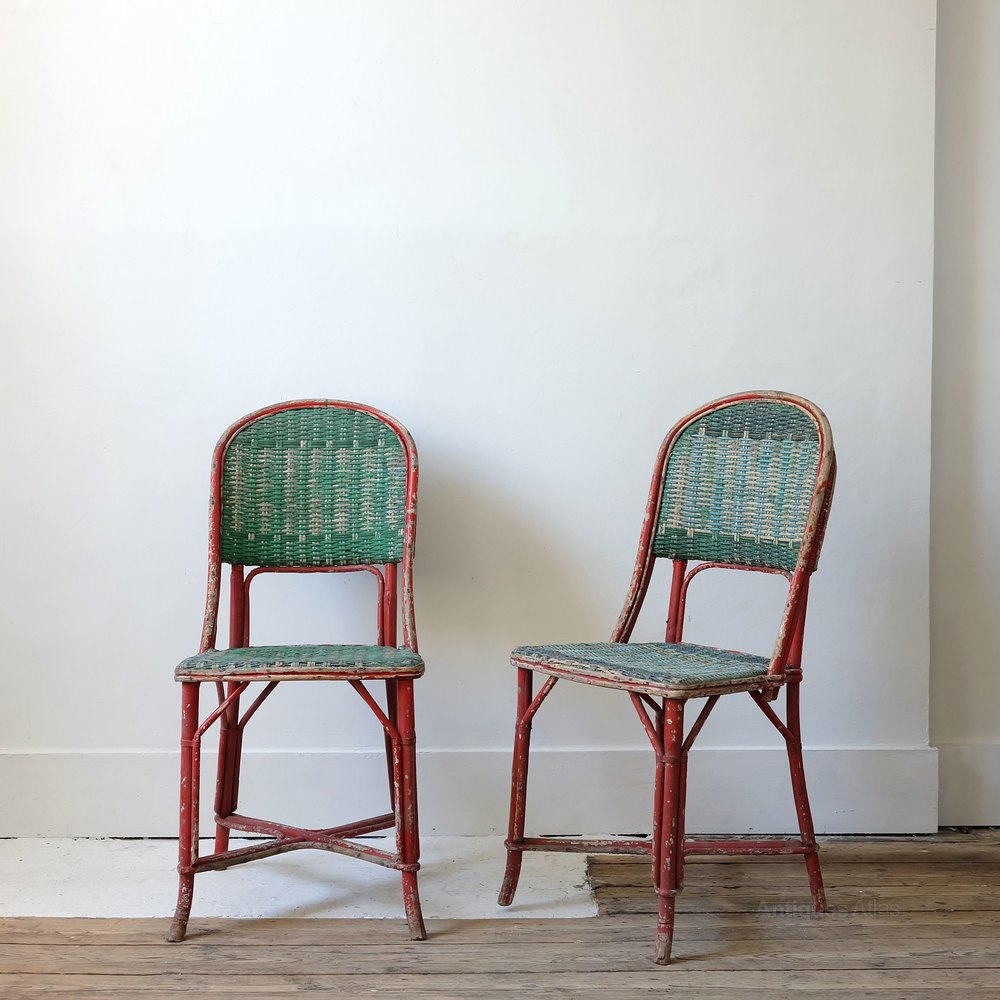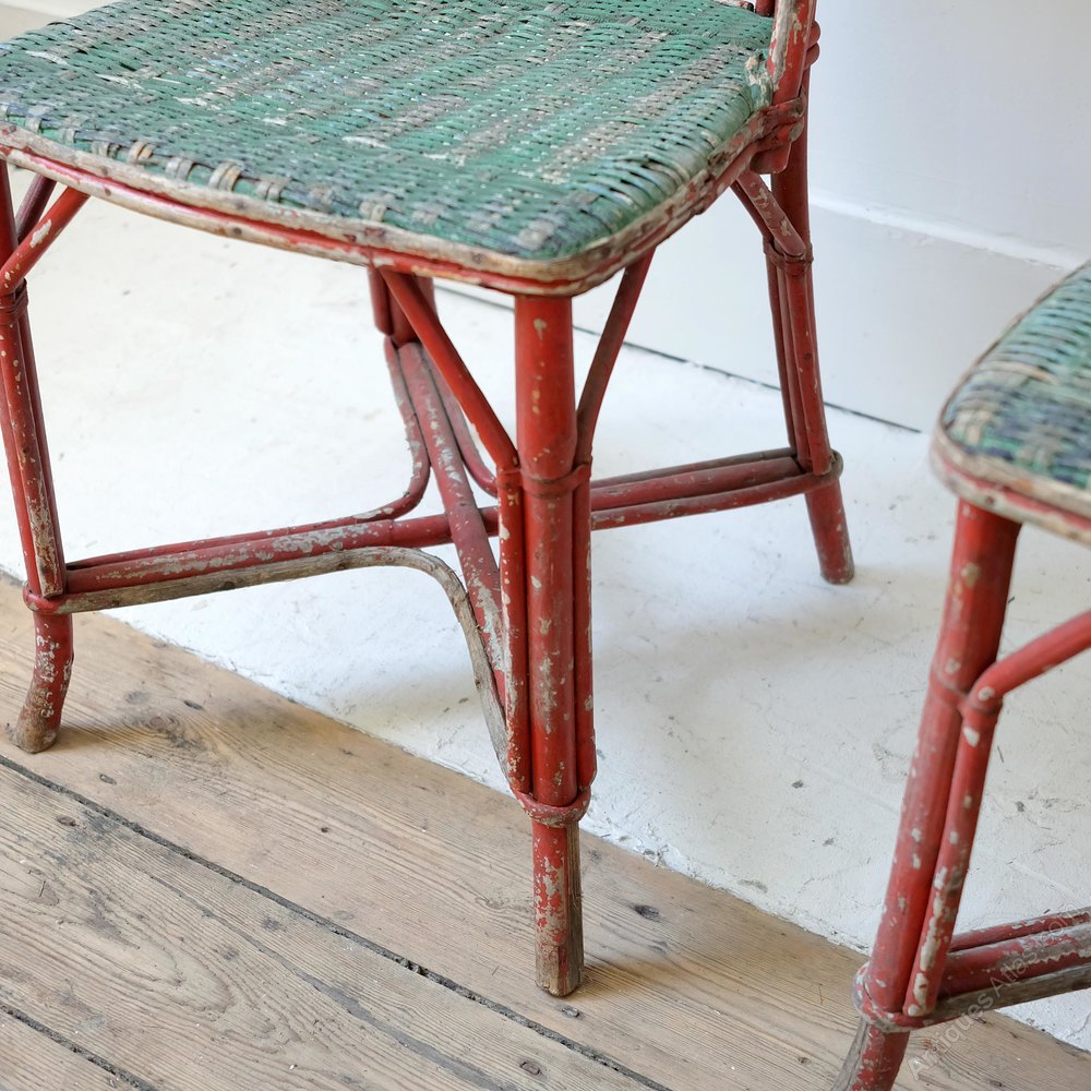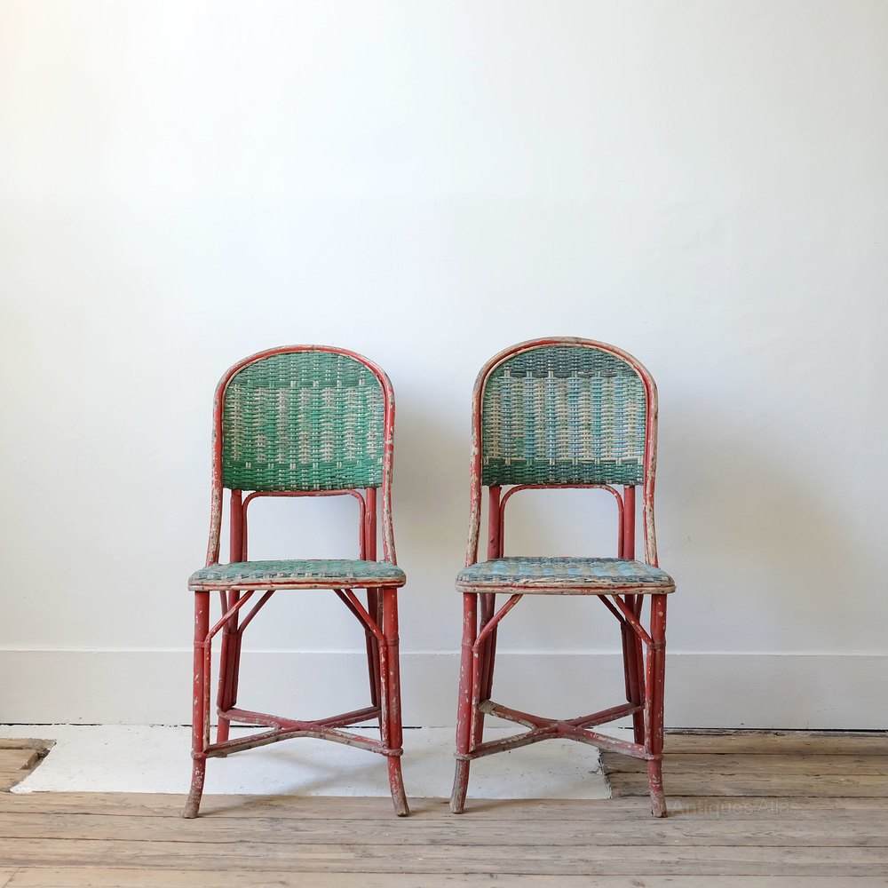 Pair of French occasional wicker chairs, early 20th century, lovely original paint. Good general condition.