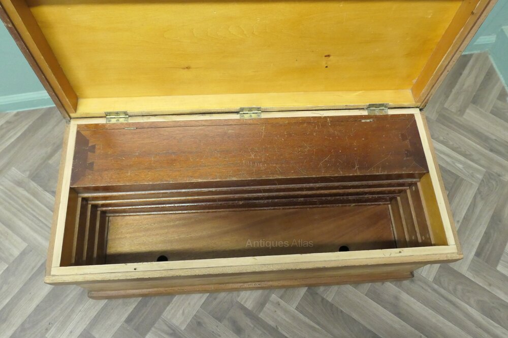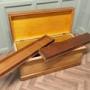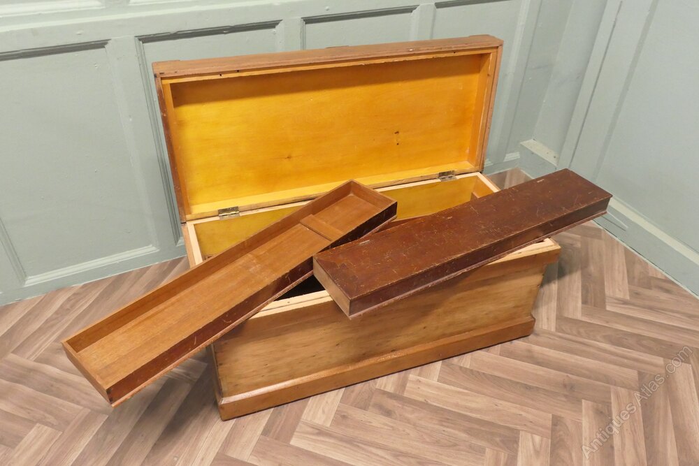 This is a strong good quality pine box it stands on a small plinth inside there are full length drawers, This is a sturdy well made box it has ample storage, it is reinforced and it is in good sound condition.
