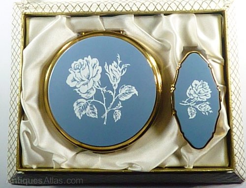 A gorgeous matte grey enamel powder compact case with lipstick holder. This delightful set was made in the 1960s. It comes with the original accessories - presentation box, felt pouch, luxury puff, sifter, instruction leaflet, lipstick dummy tube and padded paper insert. The 'Convertible' compact is suitable for all loose powder and all standard sizes of compressed powder (67 mm diameter). For example: Miss Beauty, CCUK, Max Factor 'Creme Puff' and Rimmel 'Stay Matte'. The 'Lipview' will hold any size of lipstick tube. There isn't any enamel loss on either item. The brass was lacquered during production and so it will retain this super unused condition. Both mirrors give excellent reflections. All clasps and hinges work exactly as they should. The presentation box is also still looking good. The interior lid is signed 'Stratton'. The interior base is lined with white satin. The exterior box is white with a golden linear pattern. The compact measures 3" and weighs 92.2 grams. The 'Lipview' measures 2 1/2" and weighs 18.7 grams.