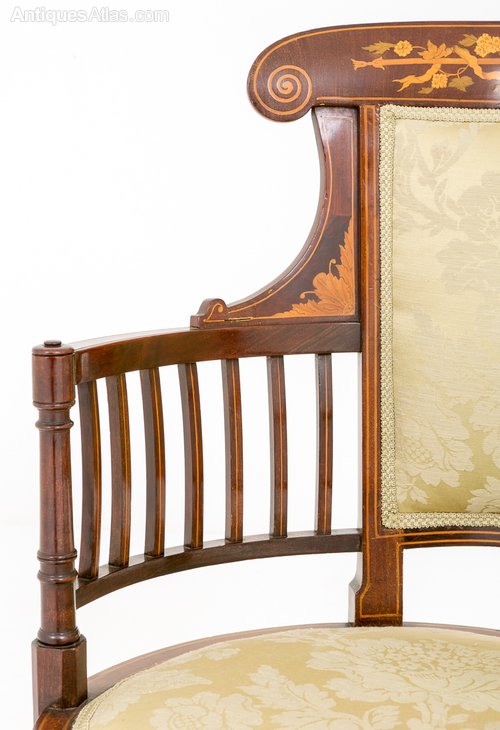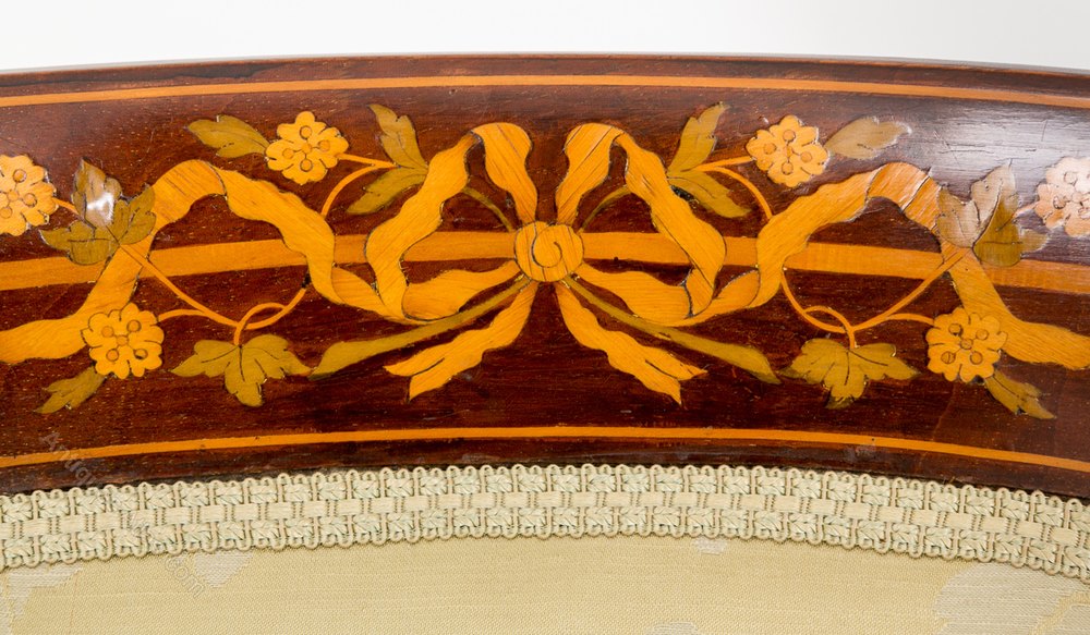 The cresting rail has very pretty floral marquetry inlays.