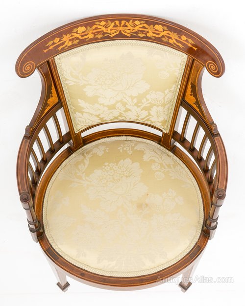 The arms are formed as turned columns with an inlaid gallery.