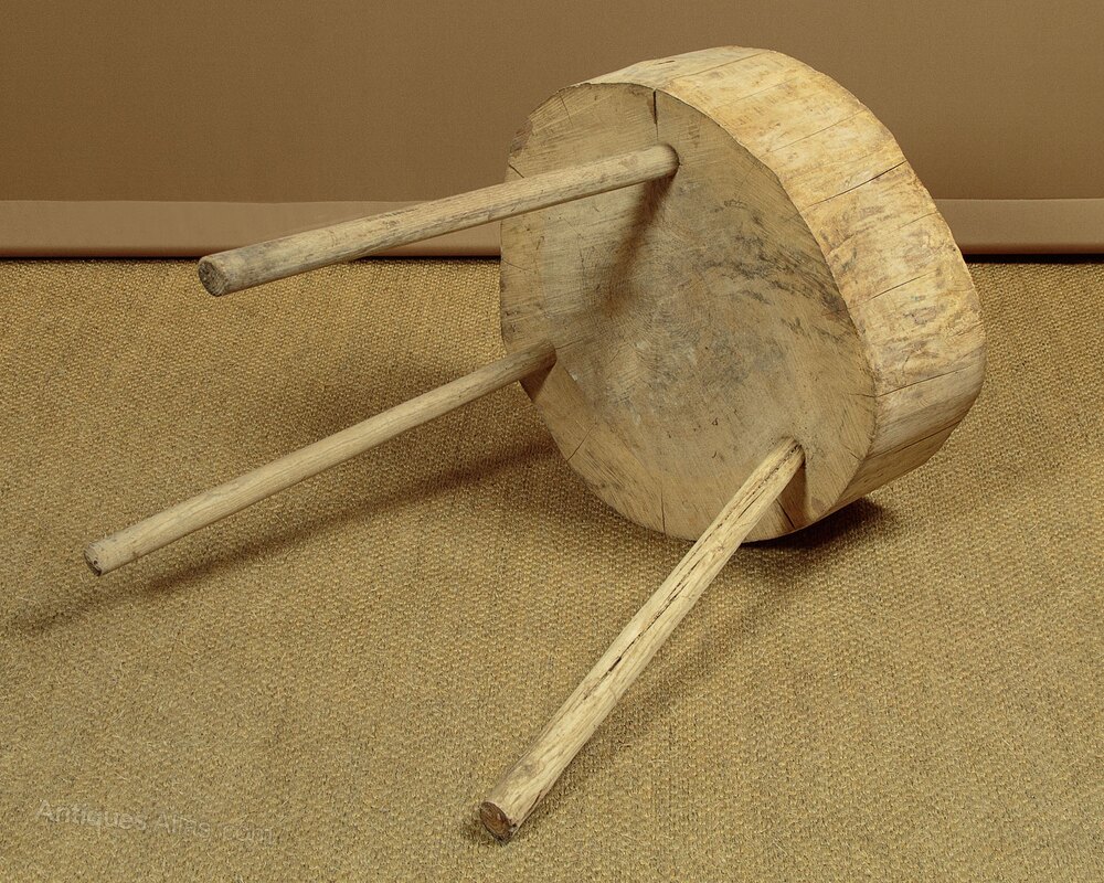Primitive Elm Stick Leg Chopping Block Side Table