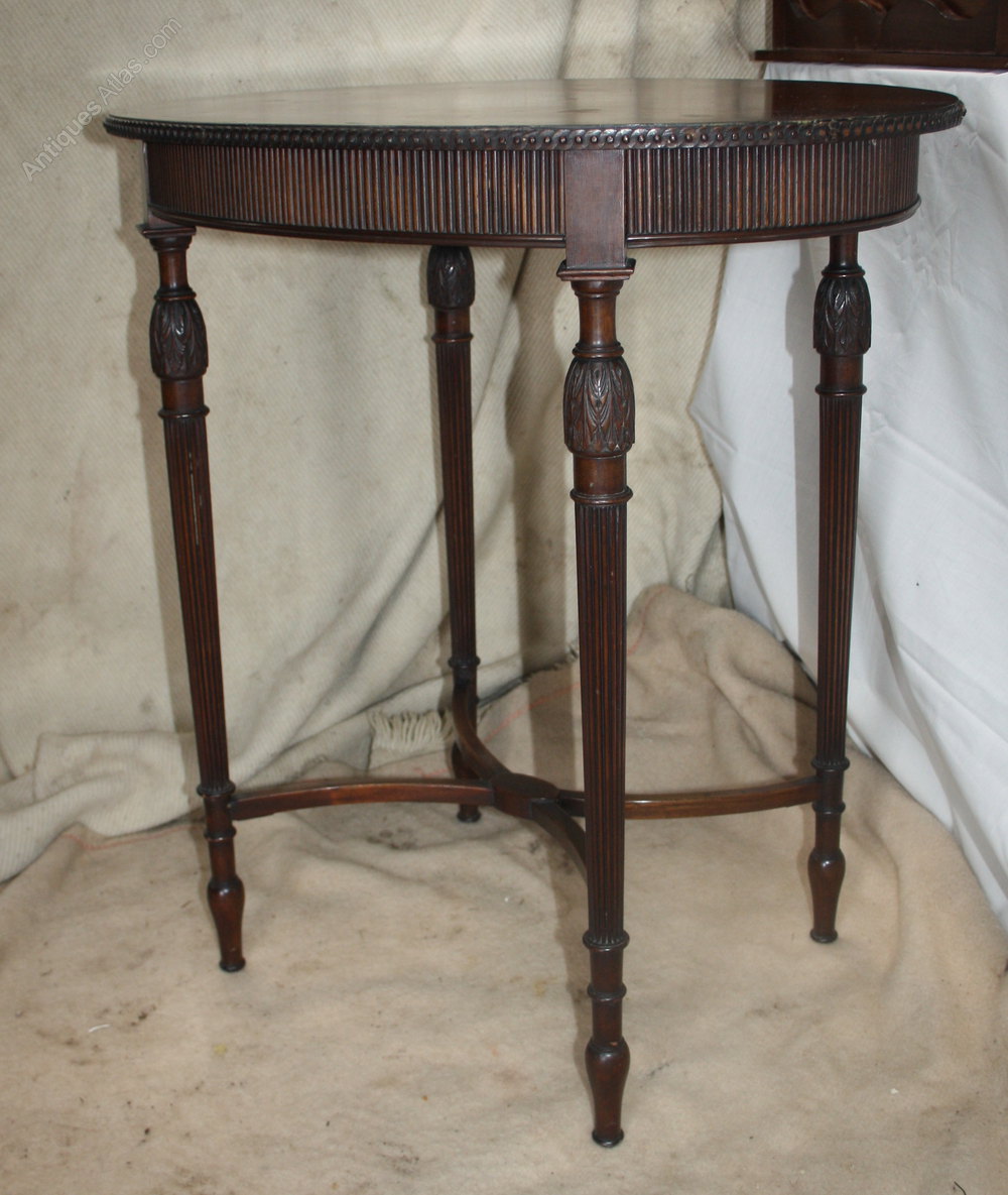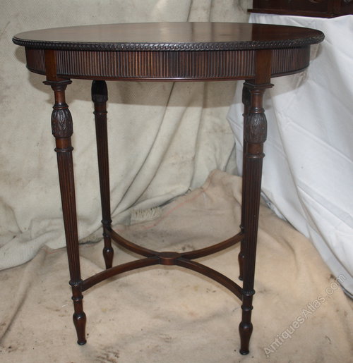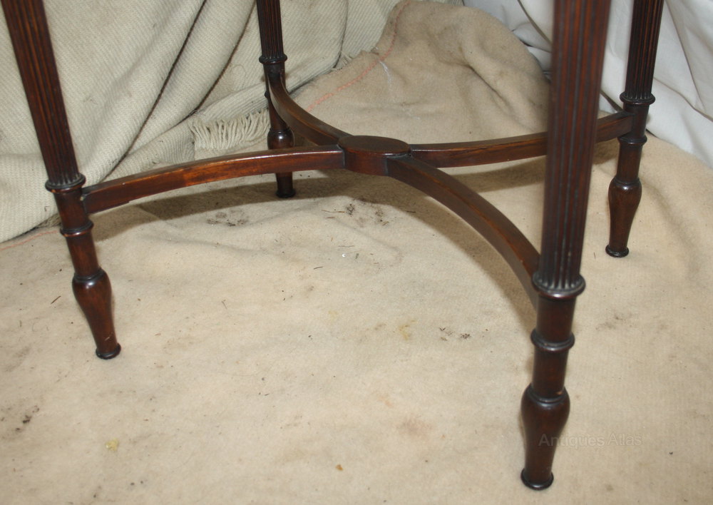 This is such an elegant lamp or side table. It is made in mahogany and is Edwardian, dating to around 1910. Just look at the quality of this piece. Look at the carved detailing to each leg, the reeding to the apron, the sweep of the cross stretchers. This table was a very expensive item when it was first new. The table oozes subtle quality.
