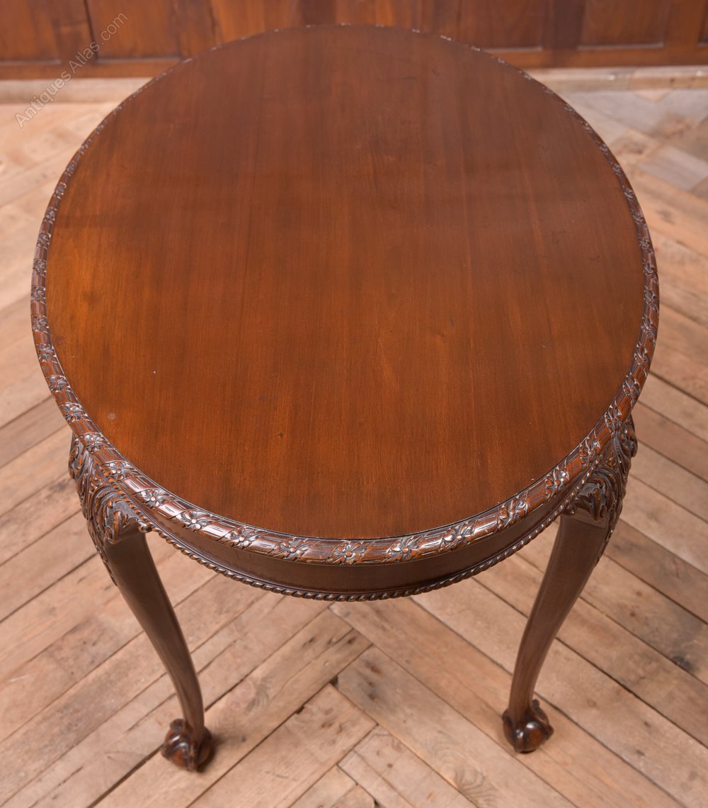 Quality Edwardian Window Table made from solid Mahogany With crisp carving to the edges and legs raised on well carved claw and ball feet in great condition