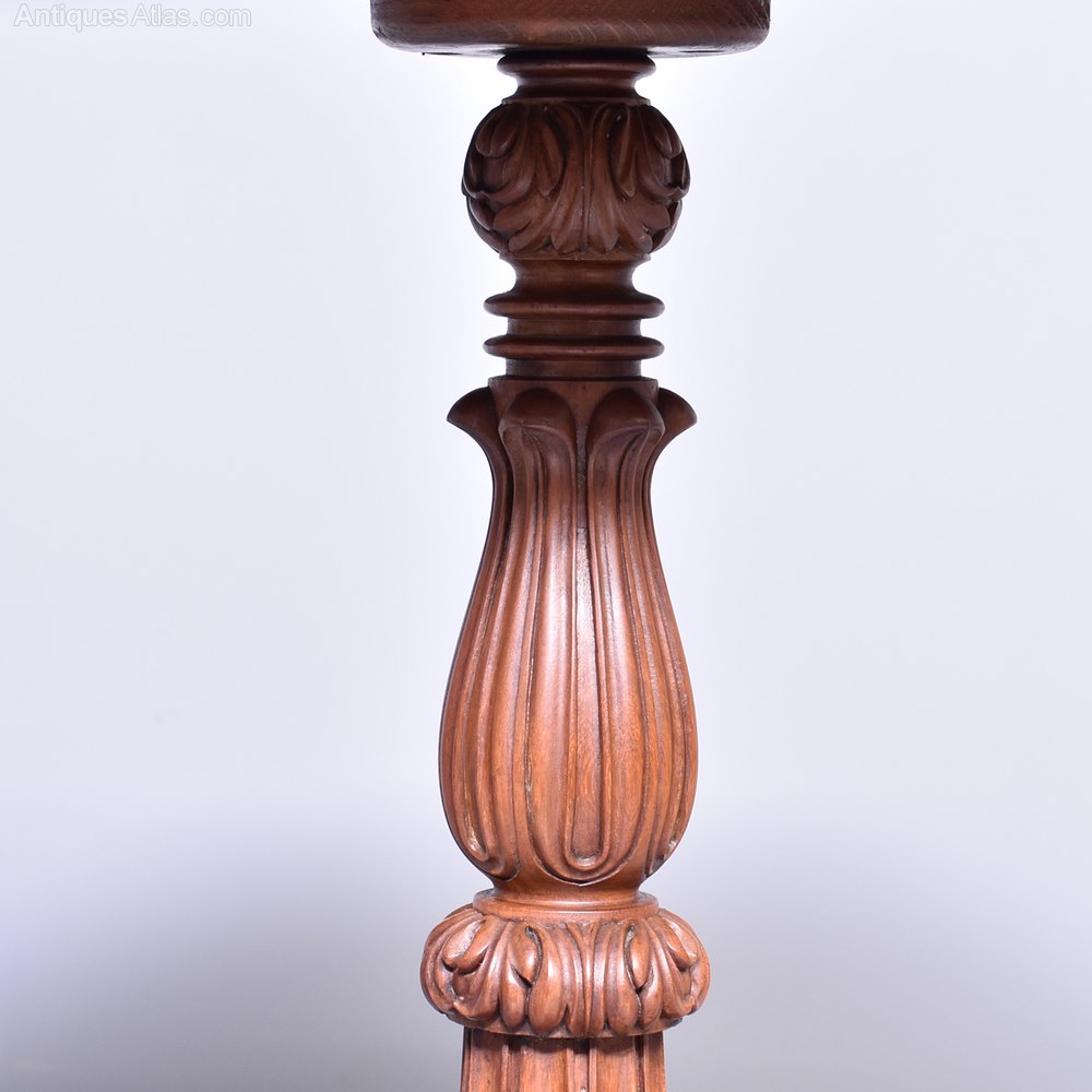 Circa 1830 and later, a quality octagonal black marble and inlaid specimen topped Italian table on Anglo Indian carved paduk base. The top with star pattern in the centre contained within concentric inlays of black and yellow variegated marble, further bands and various patterns with different marbles both geometric and curved. The table top is in excellent condition, resting on a wonderful profusely carved stem which includes top with bulbous flower head, fluted sections and foliate carving in the centre continuing down to a well carved flared foliate base all standing on a large concave triangular shaped platform base with a carved apron, finishing on wonderfully scrolled feet with the original brass and porcelain castors.