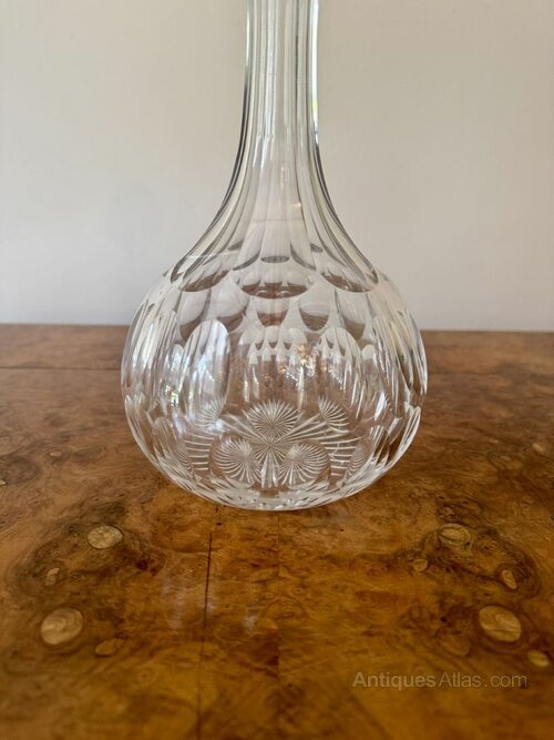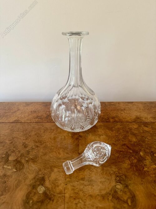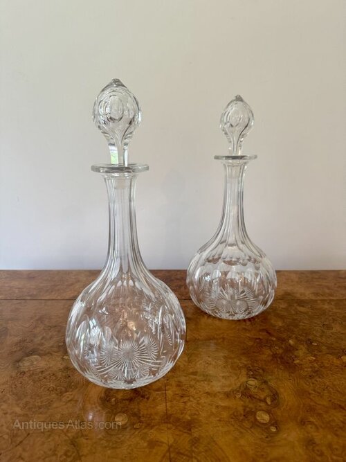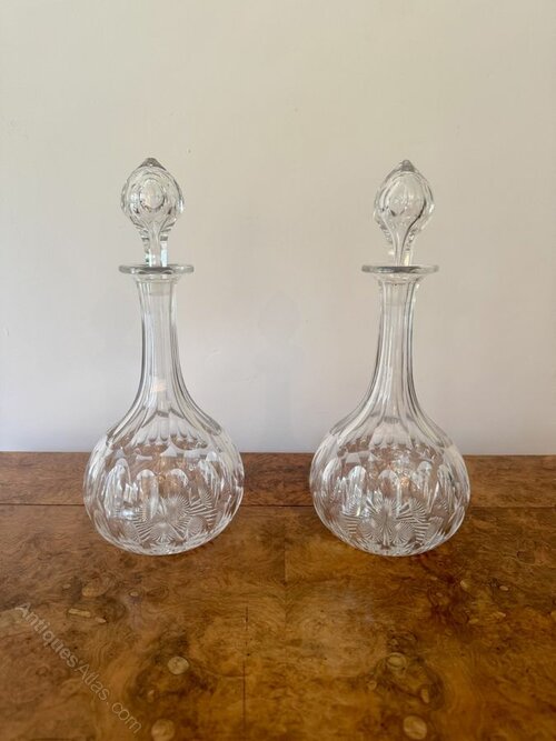 Lovely quality pair of antique Edwardian glass decanters, having a quality pair of glass decanters with the original stoppers.
