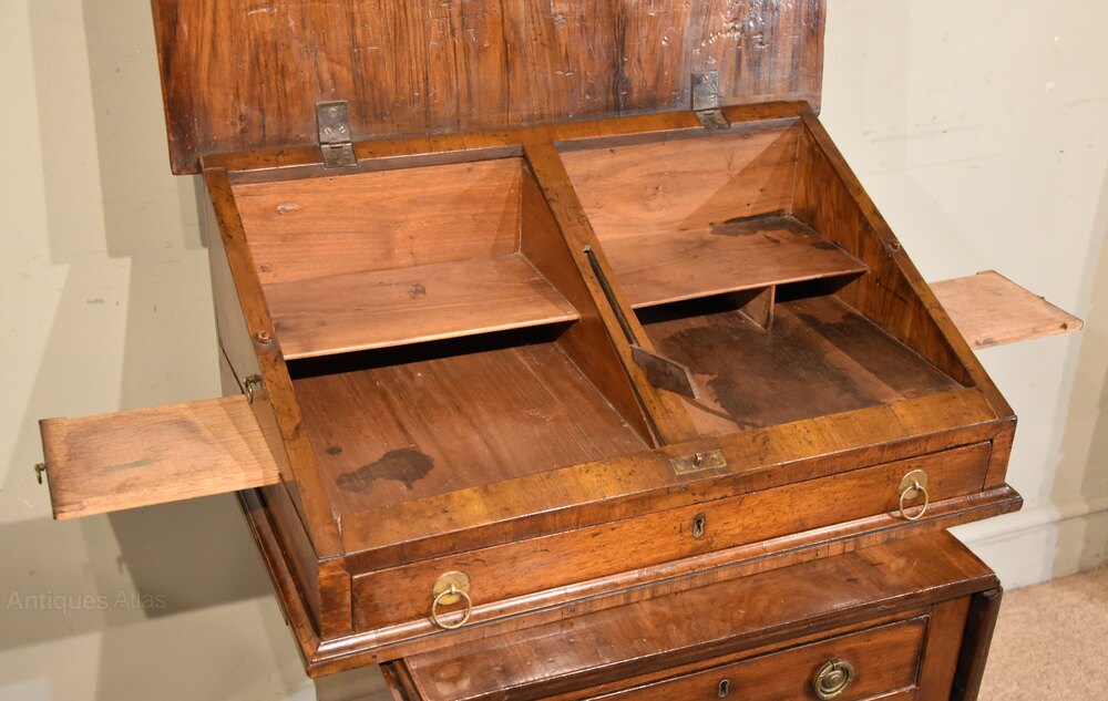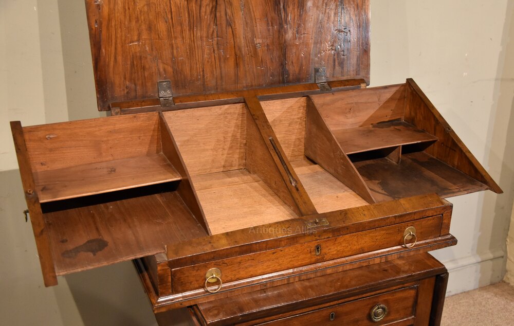 Queen Anne travelling walnut writing desk / slope