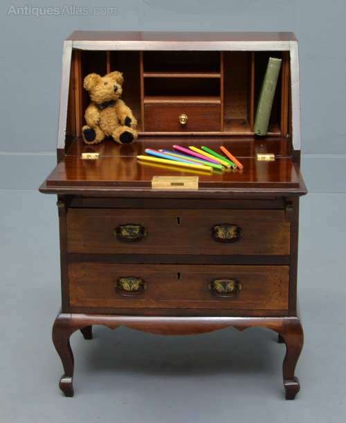 Rare Edwardian Mahogany & Marquetry Child`s Bureau