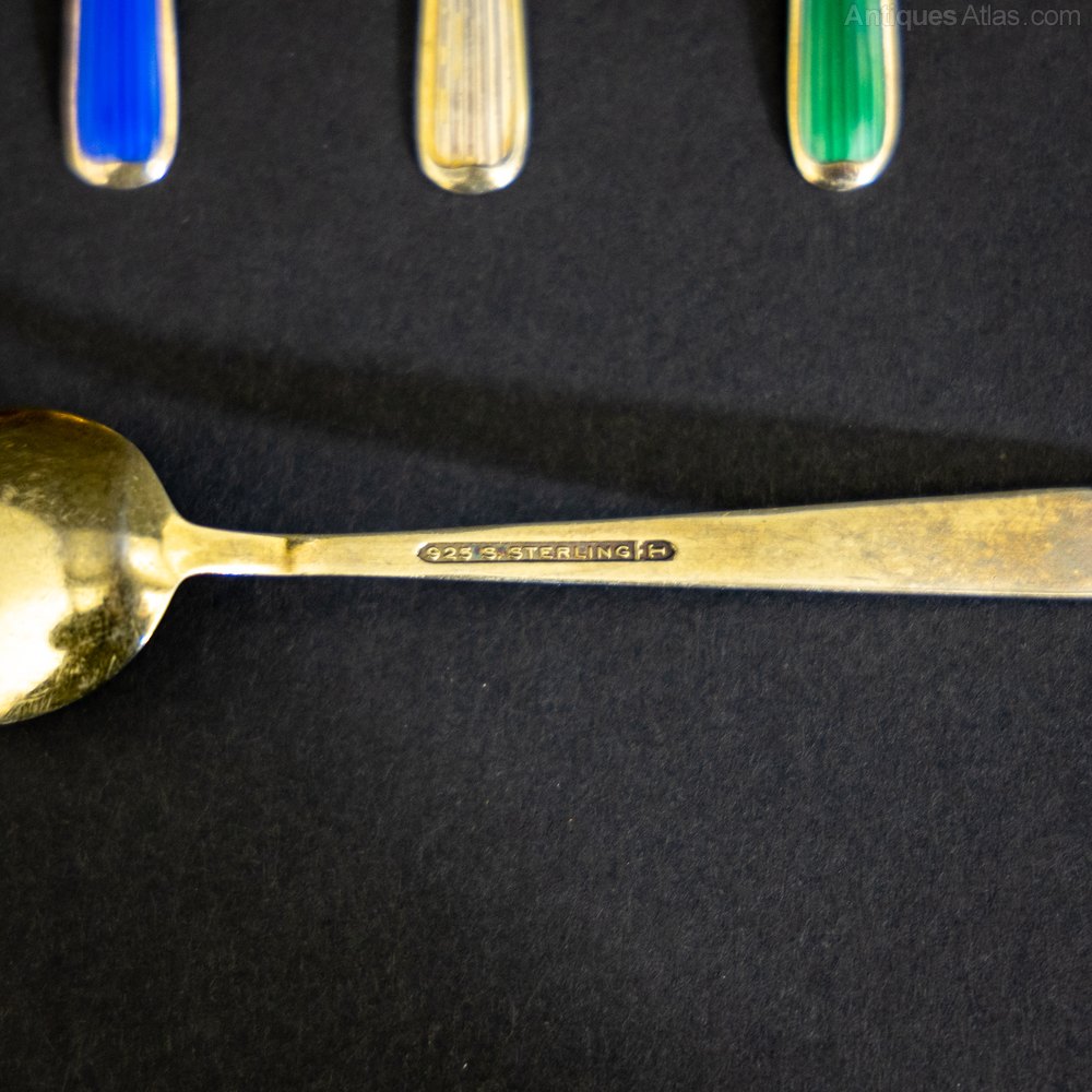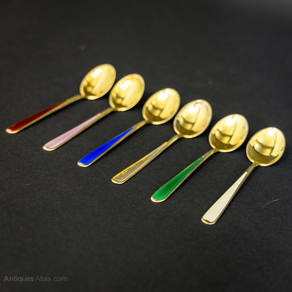 Rare Silver Gilt and Guilloche Enamel Spoons