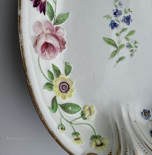 We have for sale the perfect gift for the Swansea Porcelain collector, a very rare Swansea porcelain floral dessert dish dating to around 1816 decorated in the raised relief moulded "Blind Earl" style.
