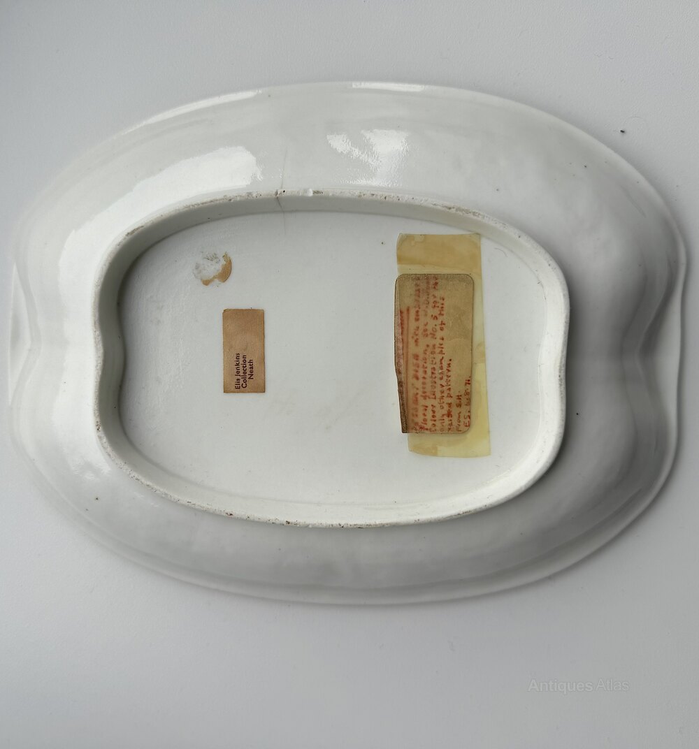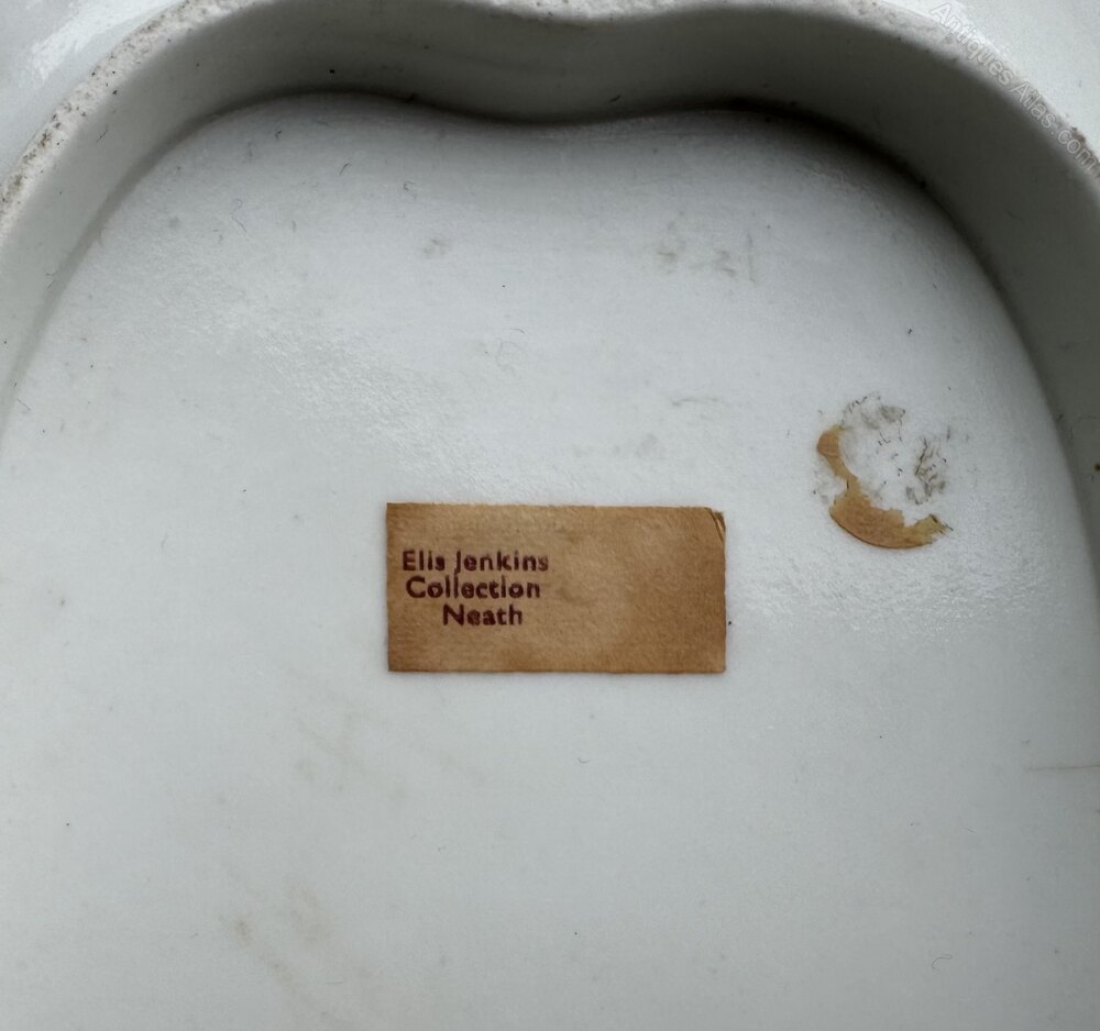 This very unusual Swansea dish was part of the Elis Jenkins collection and represents one of only two documented surviving pieces of this Swansea porcelain dessert service decorated with a polychrome design consisting of raised moulded flowers and leaves in the style of the 1770 Worcester Blind Earl and later (c1813) Flight Barr and Barr Worcester Blind Earl of Croome Court services. The only other known piece of this Swansea service is documented by W.D. John in his book Swansea Porcelain, colour plate 5. The dish carries Elis Jenkins collection labels to the base.