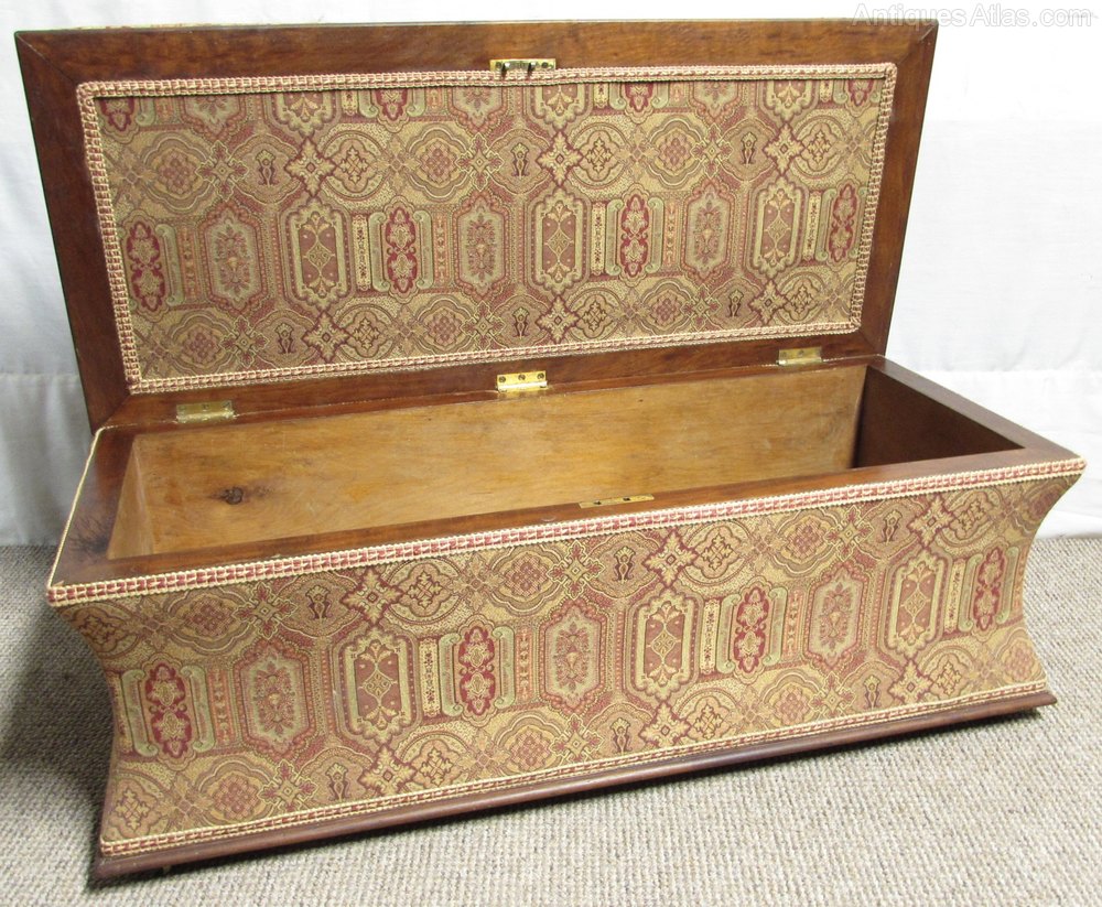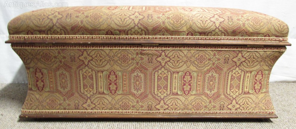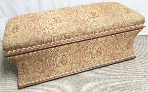 A very rare find these days, a Victorian ottoman having concave sides. All four sides are the same. The top lifts up to provide storage inside for the bedroom. The show wood in Cuban mahogany and she sits on her 4 original casters which work well. The upholstery has been newly re done so has the stuffing.