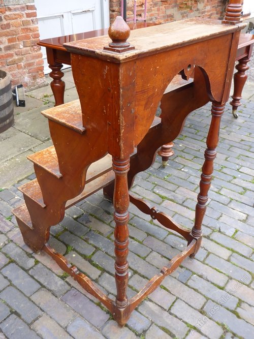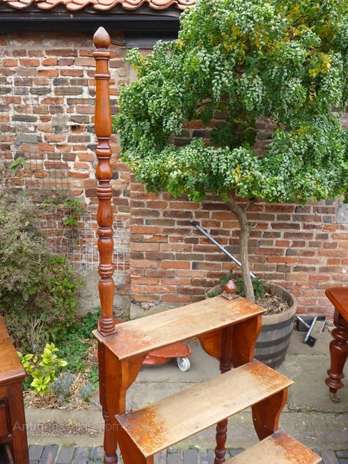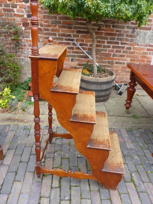 A Good set of 19th century Library steps, 5 steps high with hand rail, nice shapes to the tie rails, in excellent condition with no loose joints.