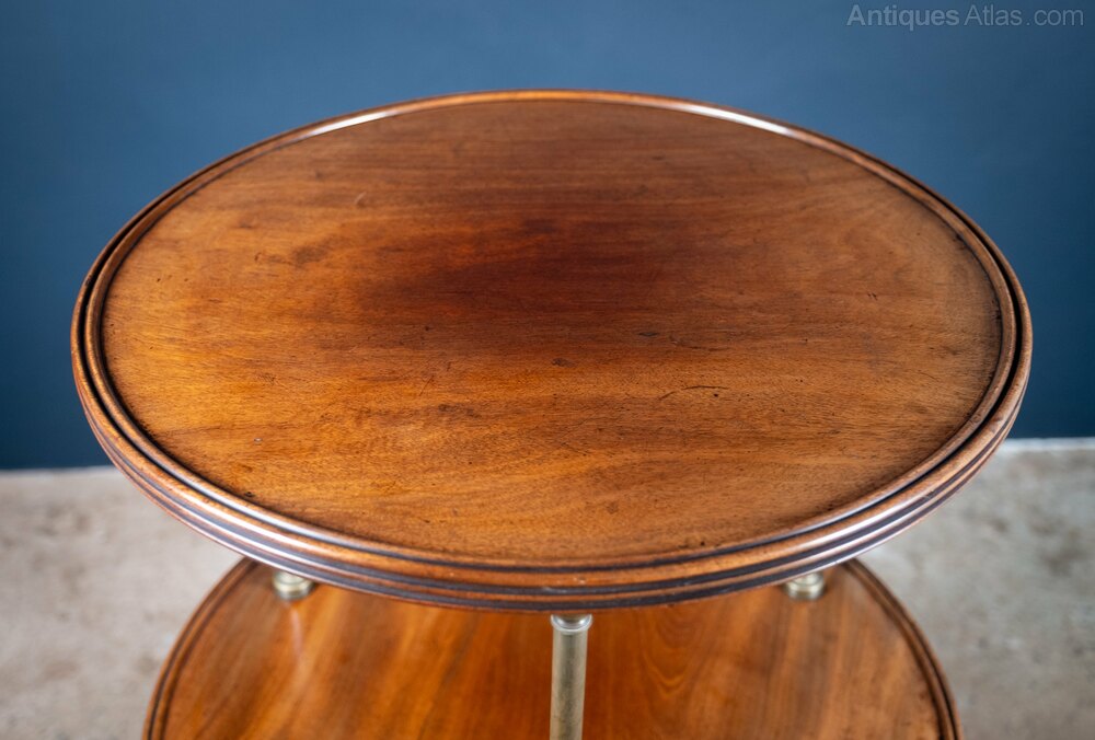 A very attractive Regency period mahogany and brass mounted dumb waiter of outstanding quality, c.1820. Numbered stamp '1105' to the underside of the lower tier.