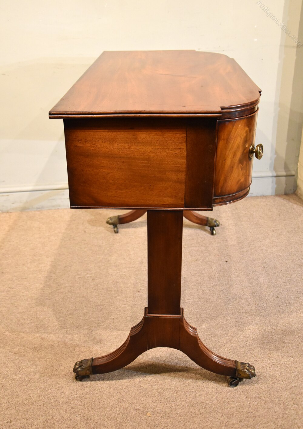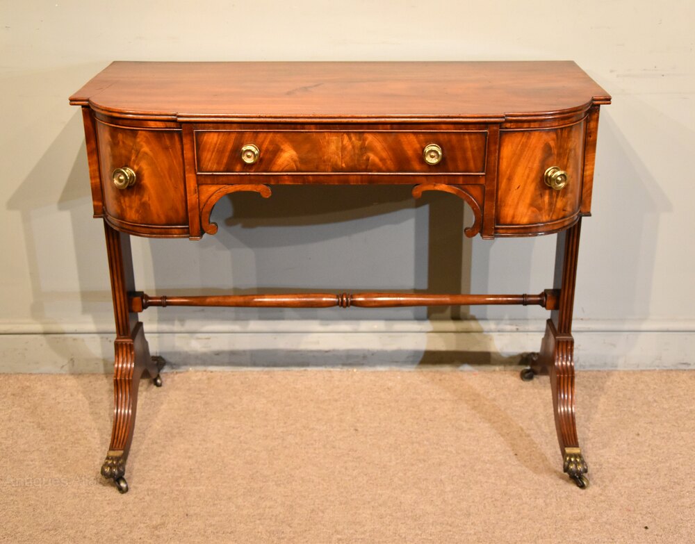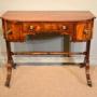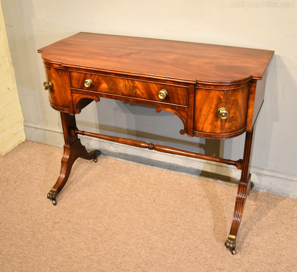 A good Regency period mahogany dressing table with trestle ends and three drawers with original knobs circa 1810