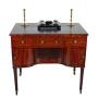 The writing surface hinges open to expose a storage area for a washing set and mirror, all of which are now missing.