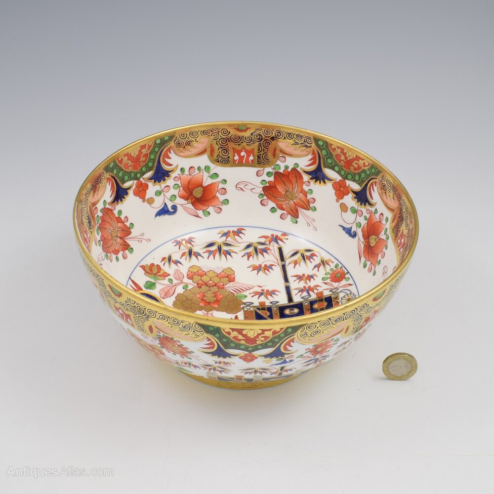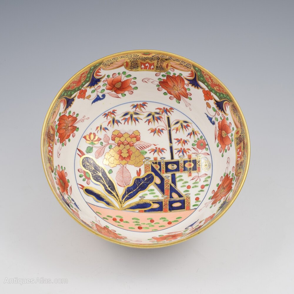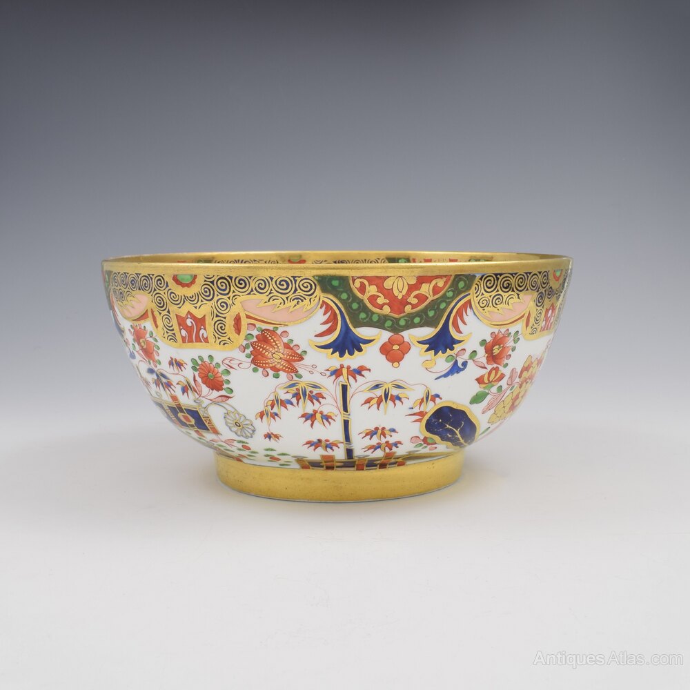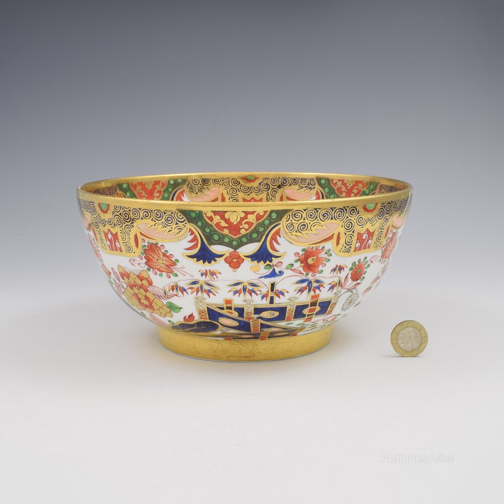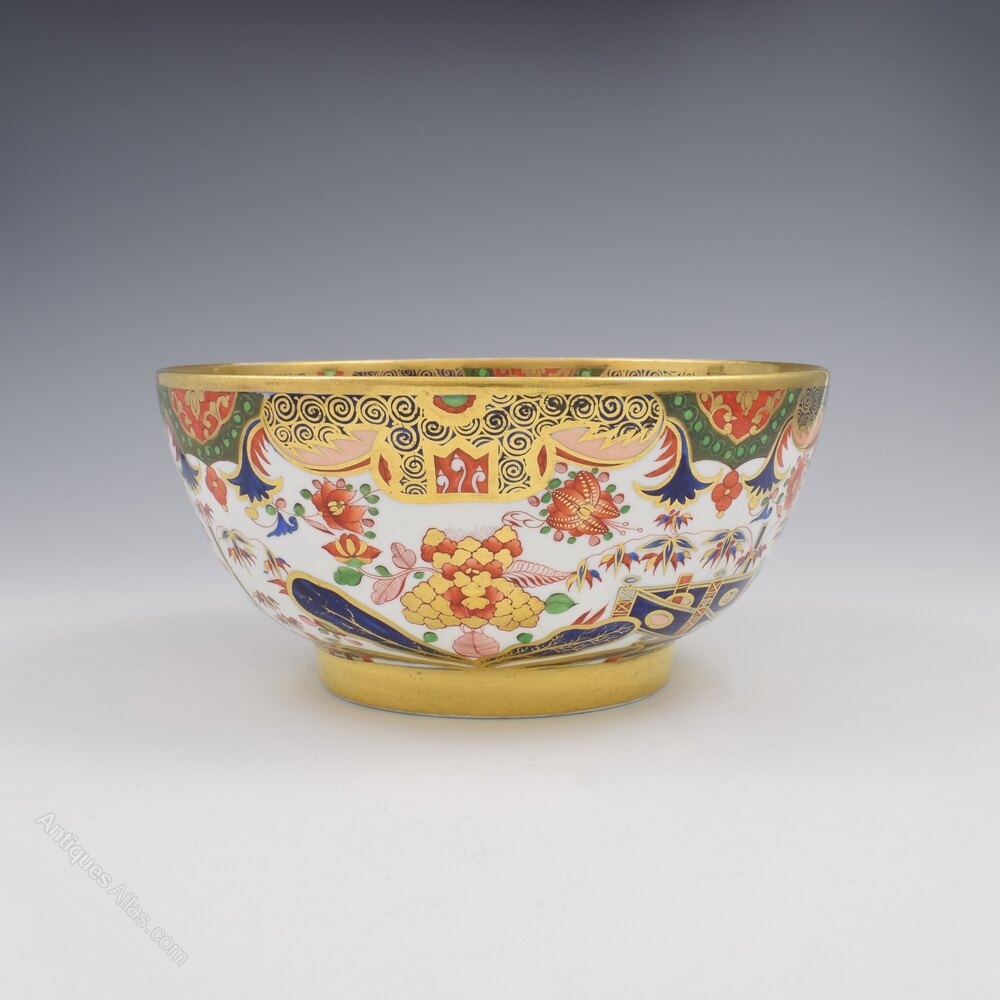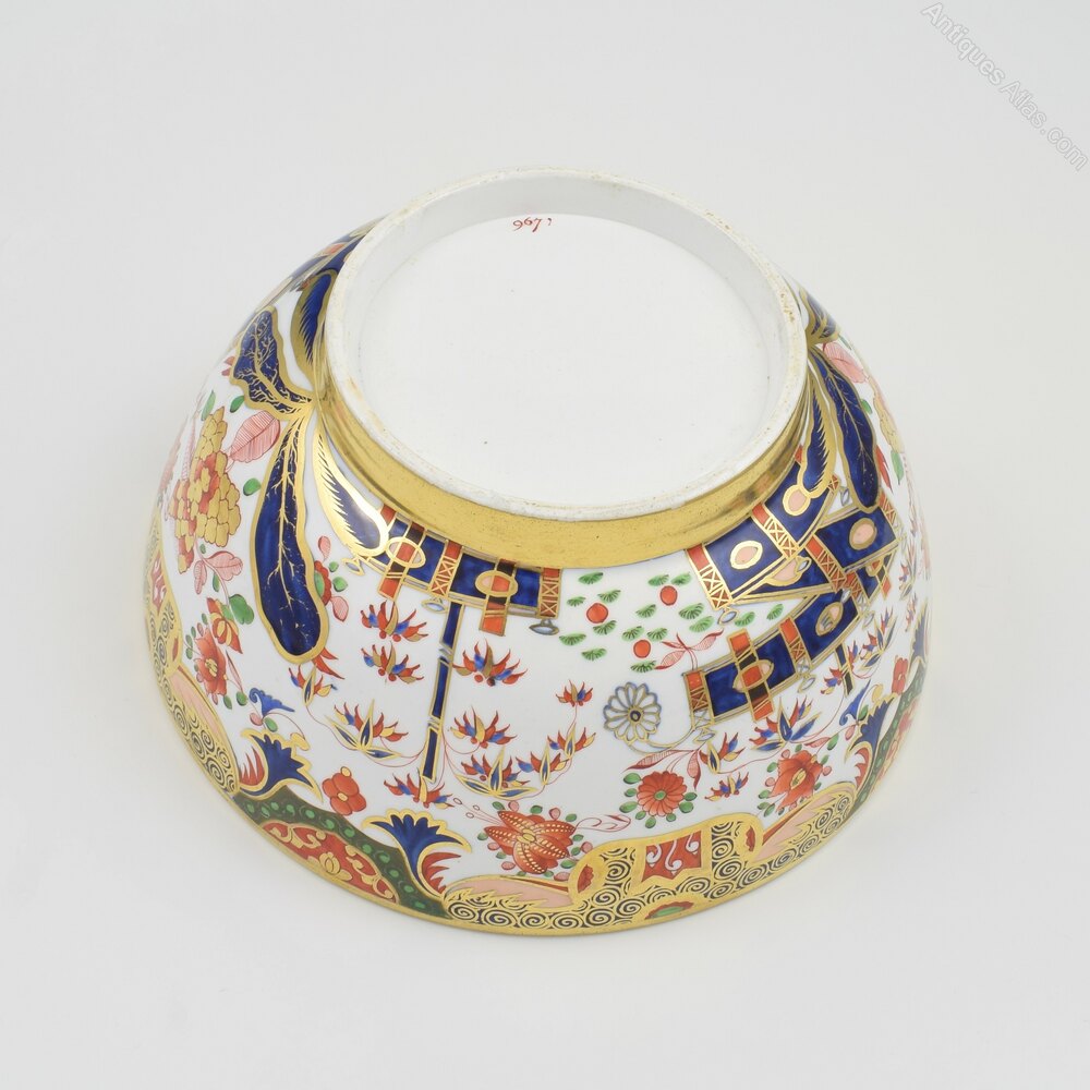 A rare Spode bone china porcelain small punch bowl decorated in the ever popular pattern 967, an imari inspired pattern in underglaze blue, with red, green and peach enamel and smothered in ornate gilding. Decorated inside and out, a really stunning and impressive piece. Marked 967 to the base. c.1810.
