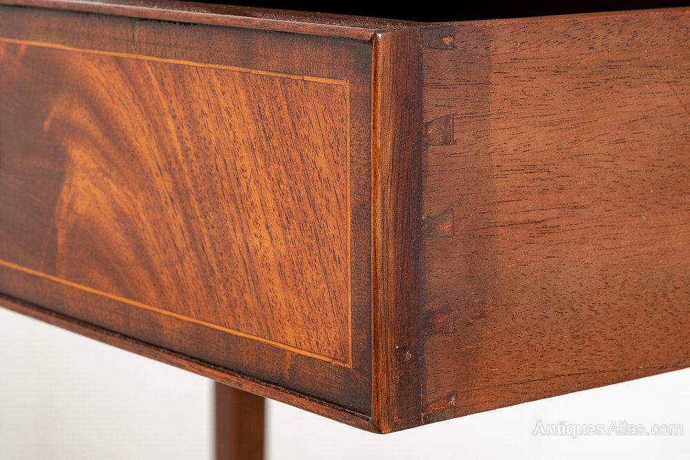 Featuring 2 Mahogany Lined Drawers with Boxwood Inlays and Brass Ring Pull Handles.
