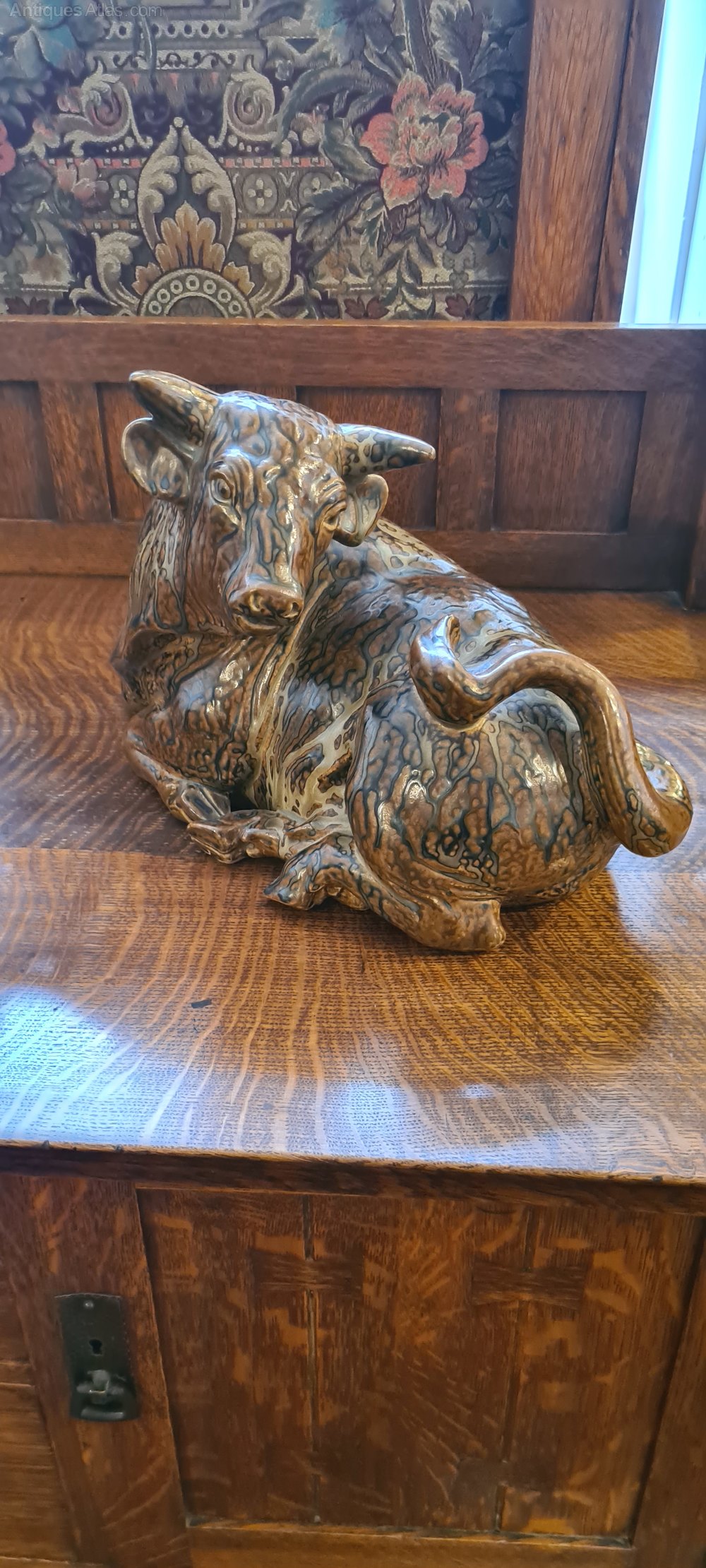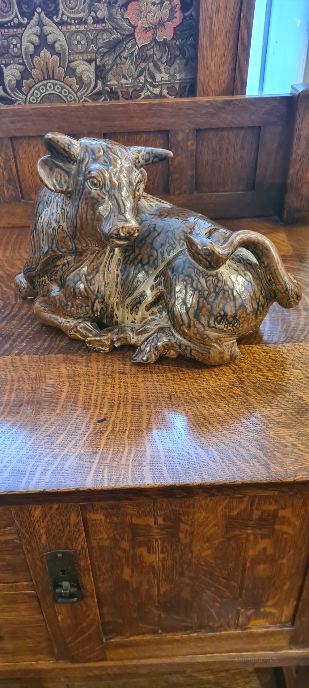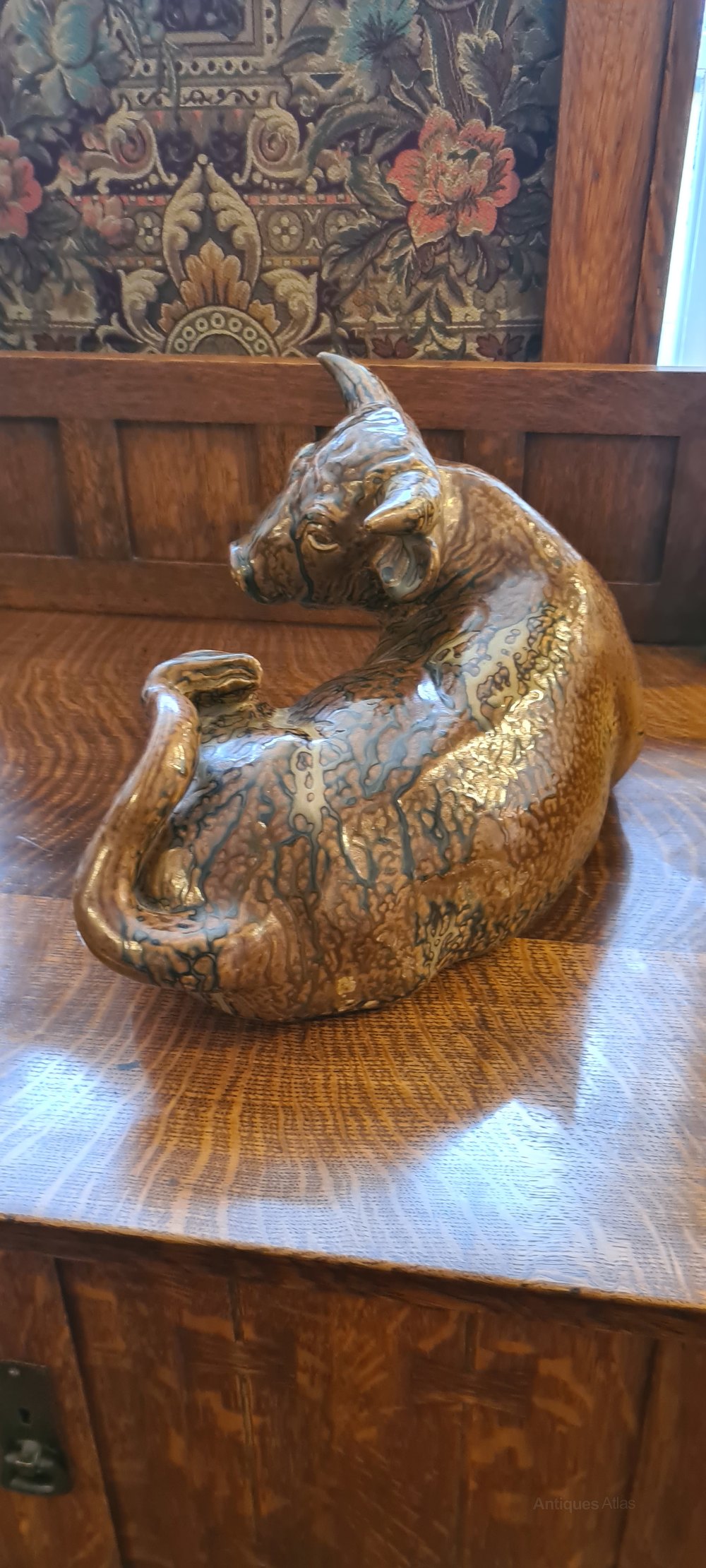A wonderful example of a bull by designer Knud Kyhn/KK. Stoneware with Sung glaze. Monogrammed KK