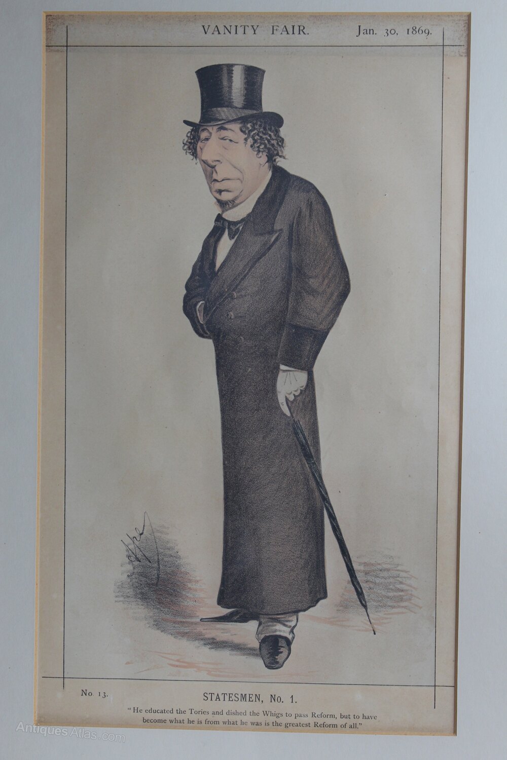 “Statesmen No.1”, A caricature portrait of The Right Honourable Benjamin Disraeli. Originally published in Vanity Fair January 30 1869 . By artist By artist Carlo Pellegrini “Ape”.