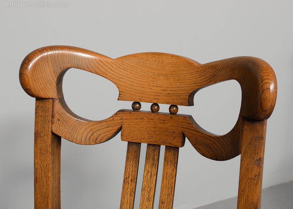Set of Six 1920s Heals of London Oak Dining Chairs