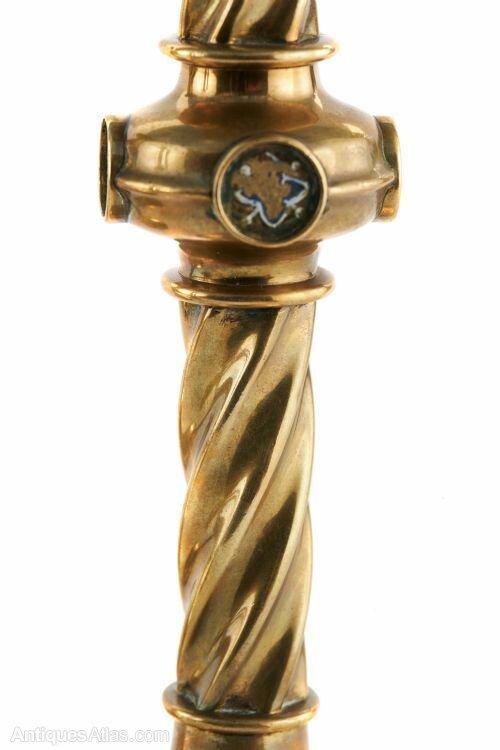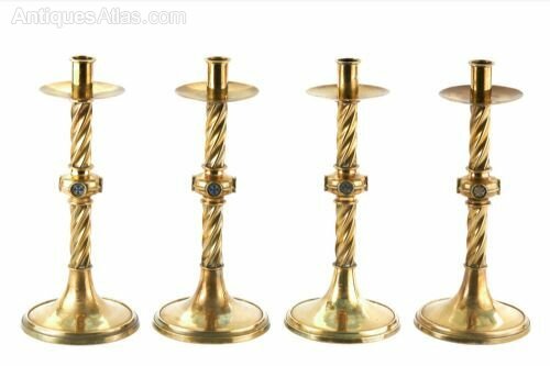 Set Of Antique Brass Ecclesiastical Candlesticks