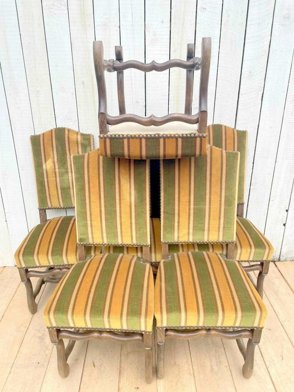 A set of 6 French mid century os de mouton chairs.