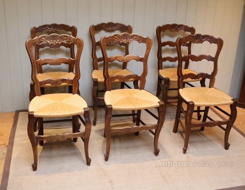 Set Of Six French Oak Dining Chairs