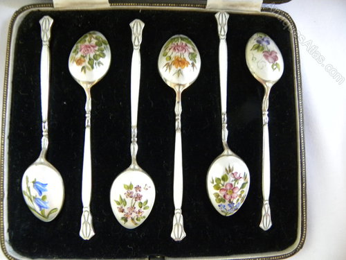 Set Of Six Silver Hallmarked Enamel Coffee Spoons
