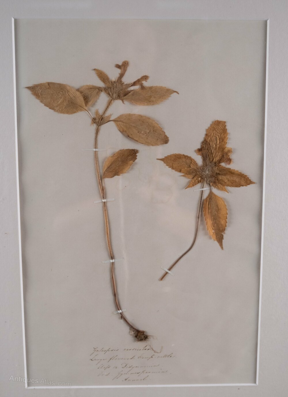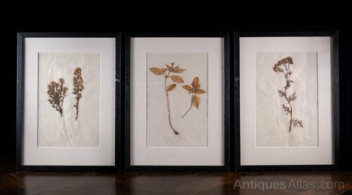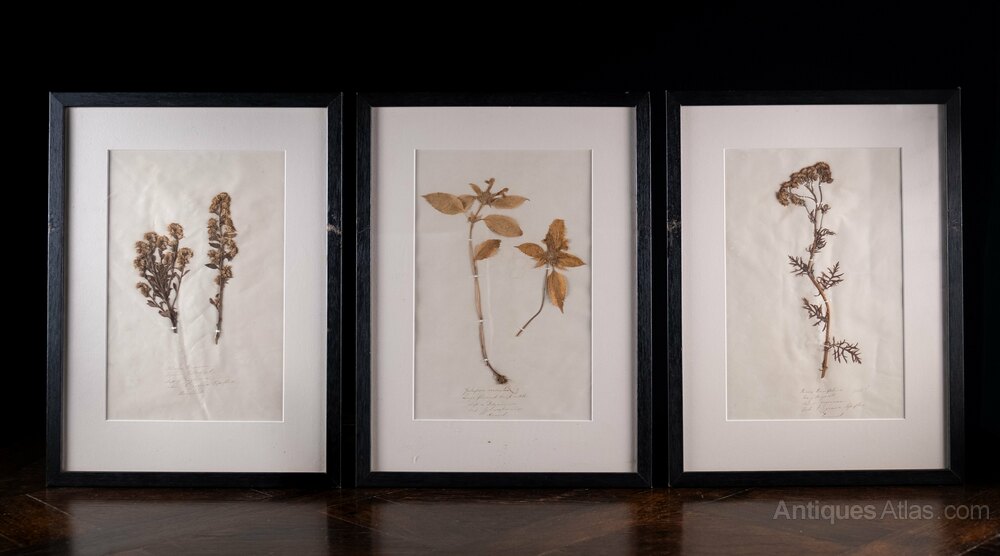 An attractive set of three 19th century botanical specimens mounted on paper with hand-written inscriptions beneath each identifying the common name, together with the genus and species.