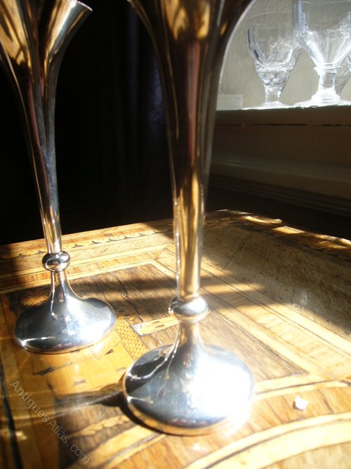Beautiful Pair Of Antique Silver Spill Vases