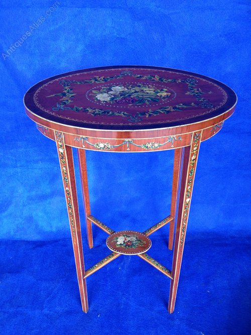 Sheraton handpainted Satinwood occasional table by C.E Govett, Earles Court.