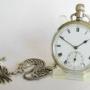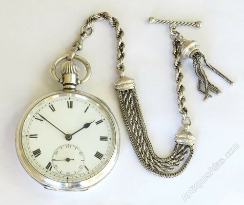 The watch comes with an antique silver albertina. The chain is unhallmarked but is probably Continental silver as the design was very popular for albertinas made around the turn of the century. Two of the ball ends are missing off the tassel fringe. The chain weighs 13.8 grams in total and measures 20cm including the t-bar and clasp.