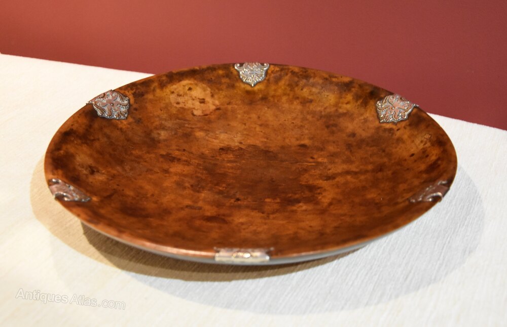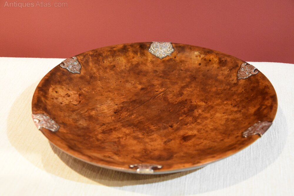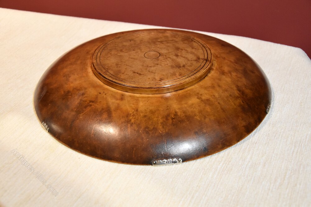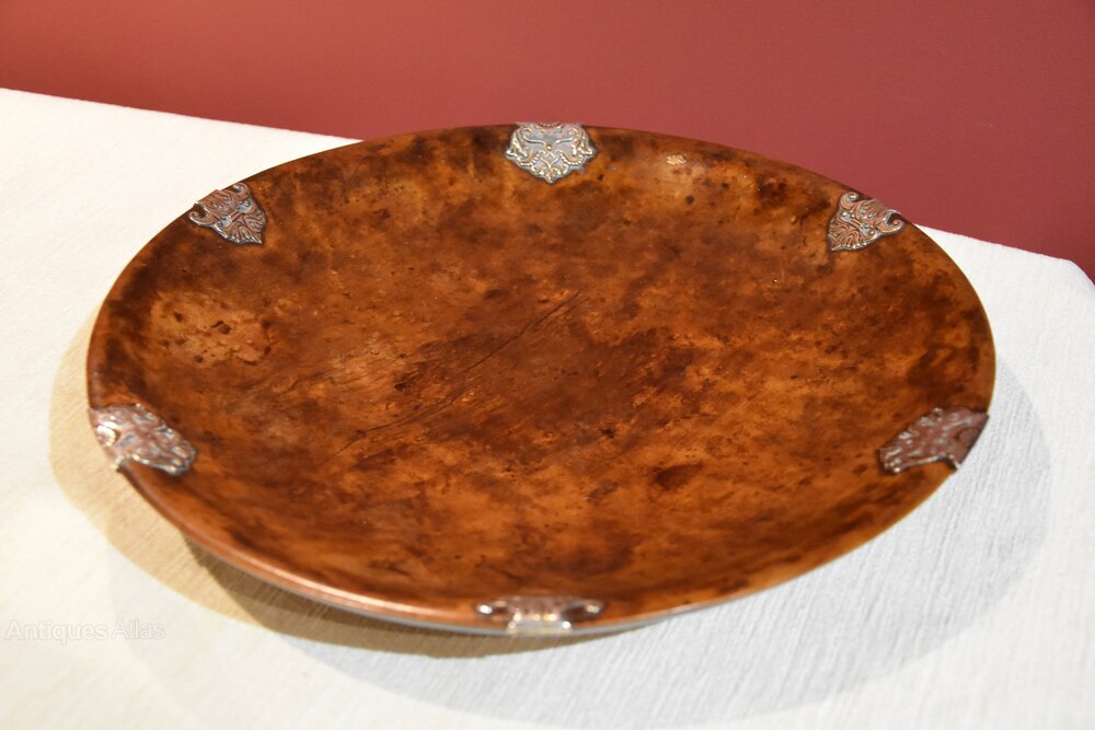 Silver mounted burr walnut maple bowl hallmarked Ernest Joseph London 1937