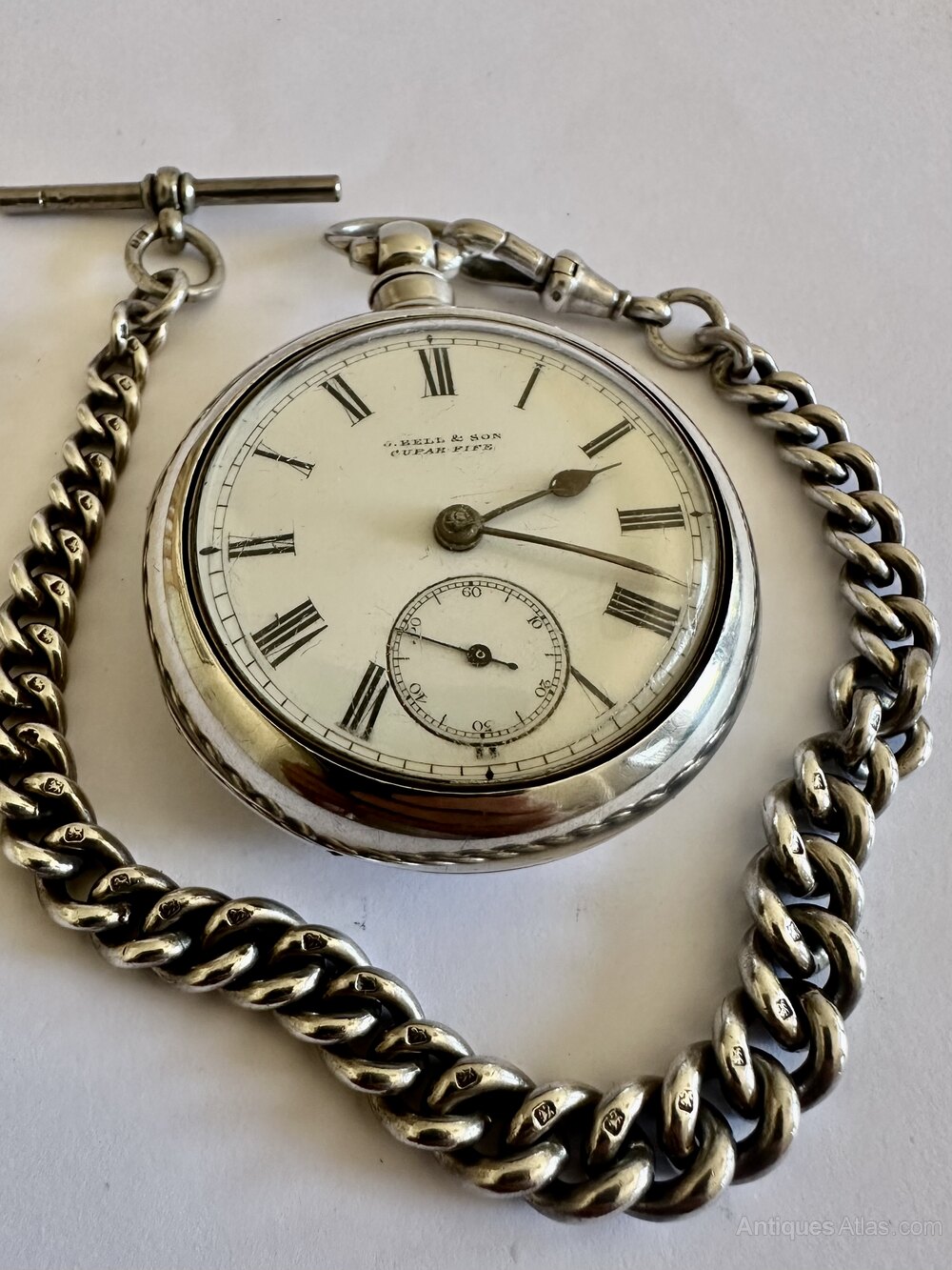 Attached good weight of silver Albert Chain , each link hallmarked 10" long