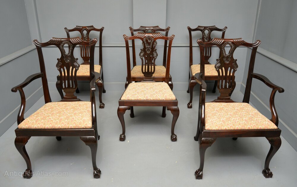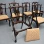An elegant set of six Edwardian period ornately carved mahogany dining chairs in the Chippendale style.