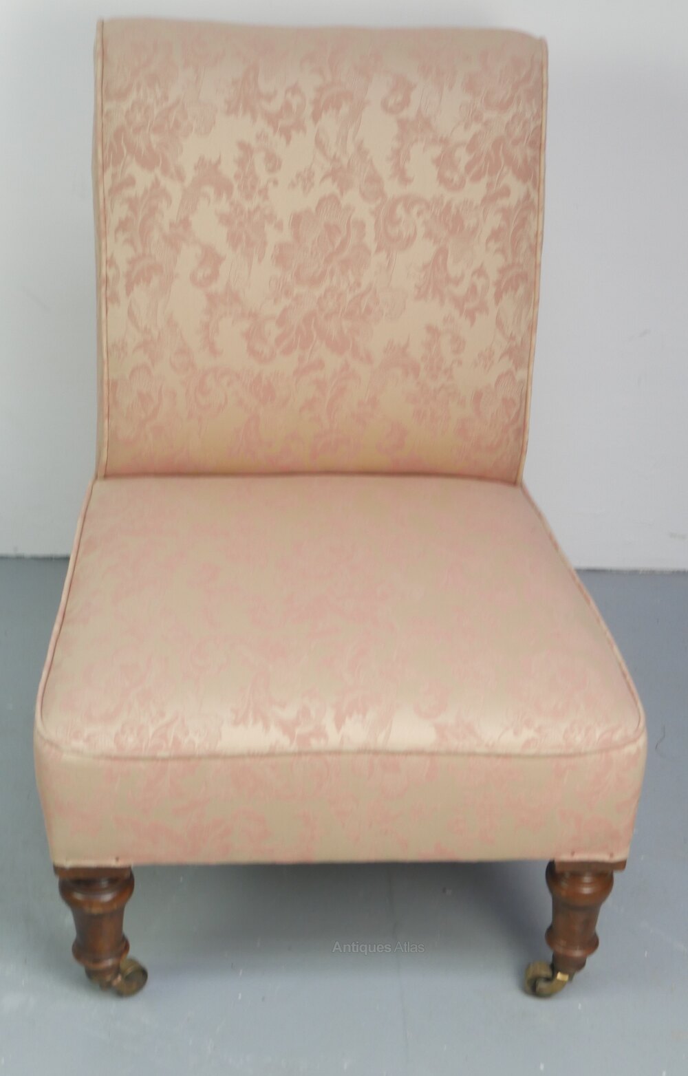 A neat late 19th century upholstered slipper hair, good quality walnut turned front legs, all original castors. Upholstery in good condition, seating height 32cm, made around 1880-1890, all ready to enjoy and use.