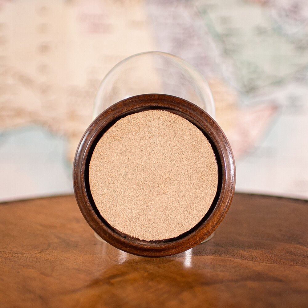 Base topped with a suede display cushion, ideal for mounting small artefacts or jewellery
