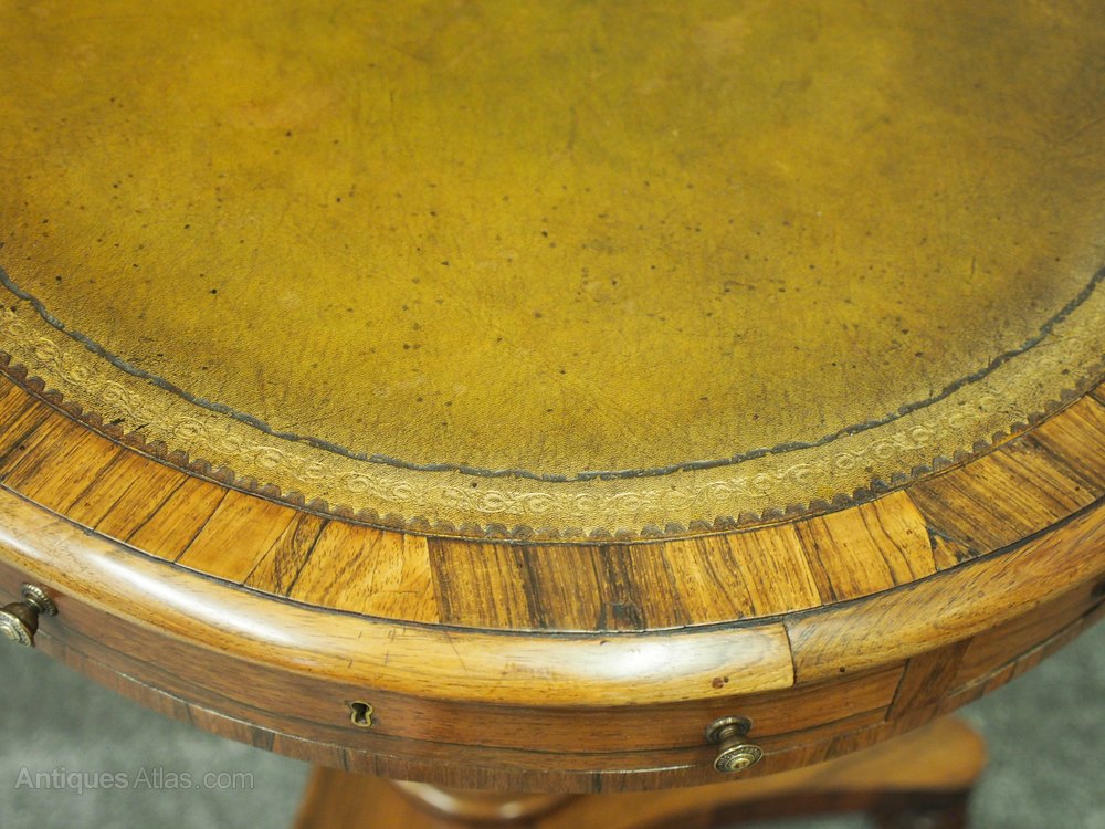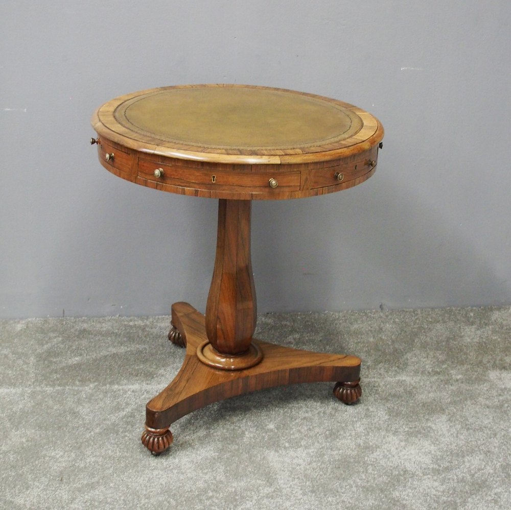 Small George IV Rosewood and Leather Top Drum Table