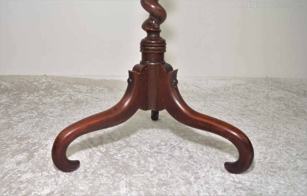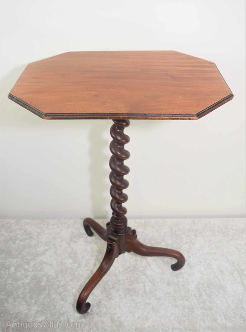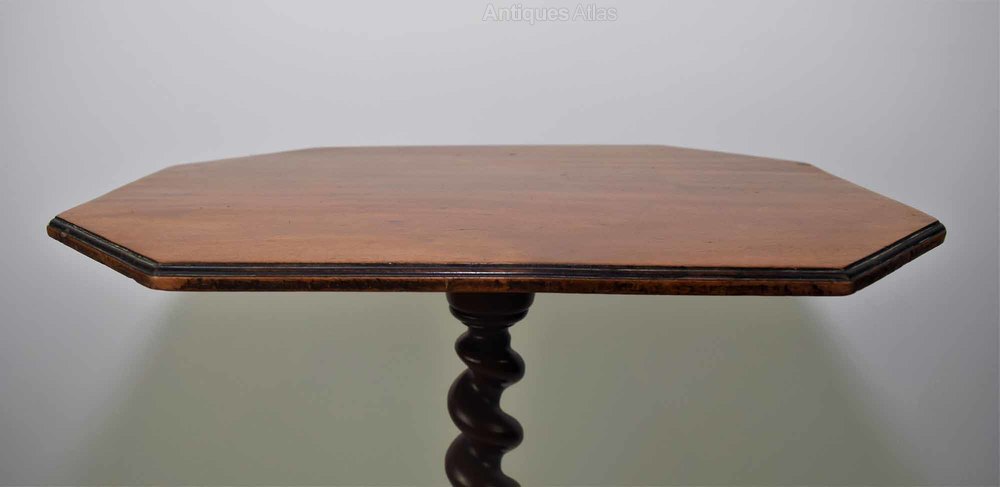 This is a beautiful little early to mid-19th-century octagonal tripod side/wine table with beautiful colour and patina. The table is raised on a good quality barley twist columb and unusual but elegant shaped tripod legs. There is sign of restoration to one of the three legs (on the last photo) but is structurally sound and does not distract at all from the elegant look of the table.